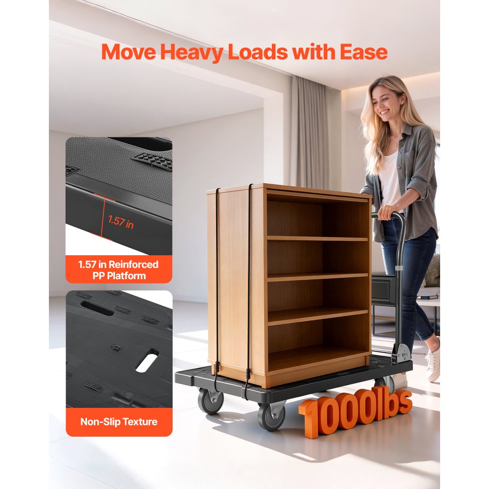 Ανθεκτικό ατσάλι, χωρητικότητα 1000 λίβρες: Κατασκευασμένο με πλατφόρμα PP και πλαίσιο από κράμα χάλυβα, αυτό το πτυσσόμενο καρότσι ώθησης αντιστέκεται στην κάμψη υπό βαριά φορτία. Υποστηρίζει έως και 1000 λίβρες (453,6 κιλά), μετακινεί κουτιά και εργαλεία με λιγότερη καταπόνηση και υψηλή ανθεκτικότητα. Σχεδιασμός που εξοικονομεί χώρο, διπλώνει σε δευτερόλεπτα: Το πτυσσόμενο φορτηγό πλατφόρμας μας διπλώνει επίπεδα με μία γρήγορη κίνηση, χωρώντας εύκολα σε στενούς χώρους όπως πορτμπαγκάζ αυτοκινήτων και γκαράζ. Ελαφρύ στη μεταφορά και εξοπλισμένο με αντιολισθητικό δάπεδο, διατηρεί το φορτίο στη θέση του χωρίς να προκαλεί ζημιές. Περιστρεφόμενοι τροχοί TPR 5 ιντσών, αθόρυβη κύλιση: Εξοπλισμένο με περιστρεφόμενους τροχούς TPR 5 ιντσών τοποθετημένους σε ρουλεμάν και σταθερούς τροχούς, αυτό το πτυσσόμενο καρότσι με επίπεδη επιφάνεια προσφέρει κινητικότητα 360° και λειτουργία χαμηλού θορύβου σε ανώμαλα δάπεδα, στενές στροφές και τραχιές επιφάνειες. Άνετη λαβή, εύκολος χειρισμός: Η λαβή (διάμετρος 28 mm / 1,10 in) εξασφαλίζει ασφαλή και άνετη λαβή. Περιλαμβάνει κορδόνι και πτερύγιο 2 m (6,56 ft), αυτό το πτυσσόμενο καρότσι με επίπεδη επιφάνεια και ρόδες ασφαλίζει το φορτίο και αποτρέπει την ολίσθηση. Συμπαγής αλλά ευρύχωρη πλατφόρμα: Αυτό το βαρέως τύπου χειροκίνητο φορτηγό διαθέτει πλατφόρμα 35,2 x 23,4 ίντσες (895 x 595 mm) με συνολικό ύψος περίπου 33,5 ίντσες (850 mm) όταν είναι ξεδιπλωμένο. Διπλώνει μόνο σε 11,4 ίντσες (290 mm) για εύκολη αποθήκευση.