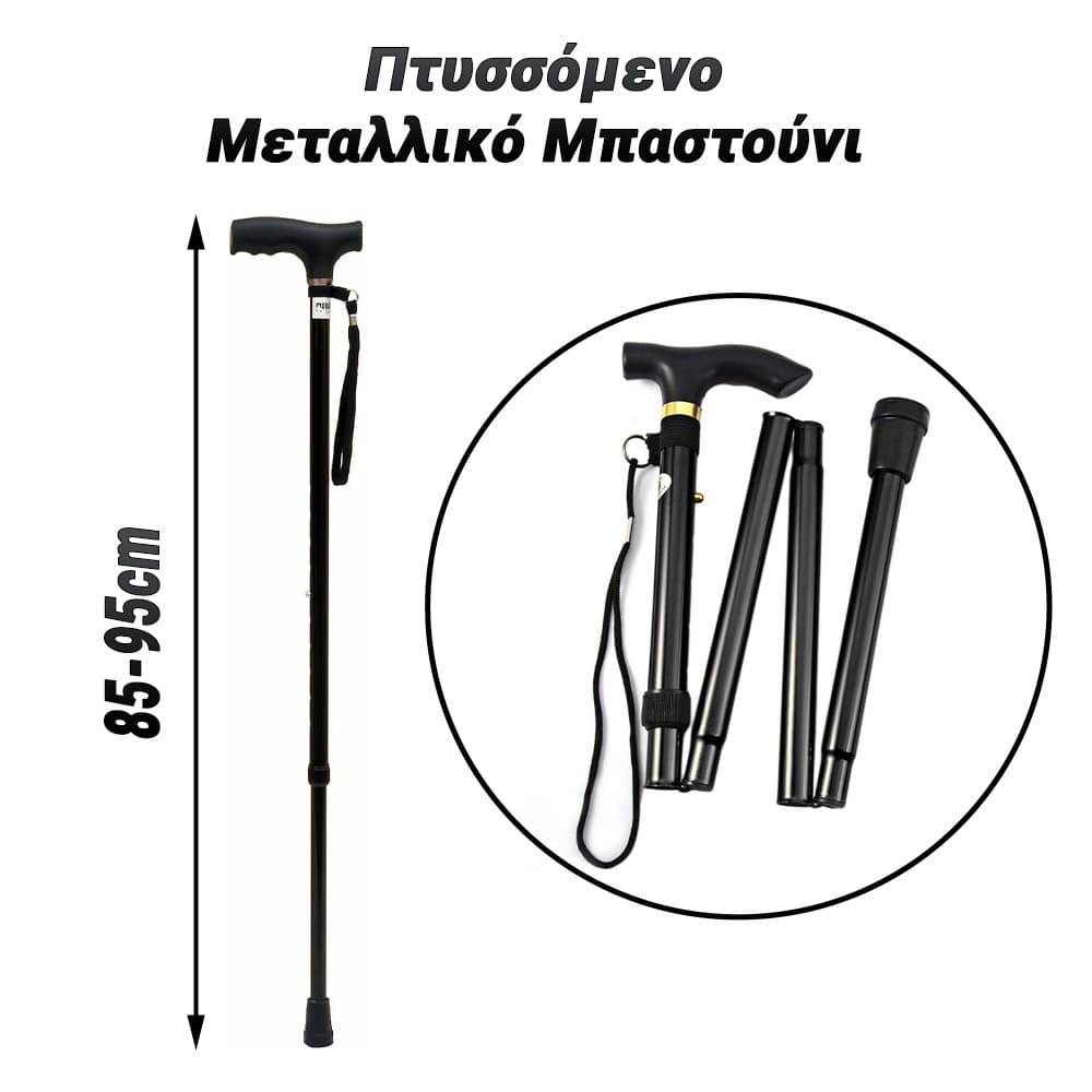 Παρουσιάζουμε το πτυσσόμενο μεταλλικό μπαστούνι, το ιδανικό αξεσουάρ για την καθημερινή σας ζωή, συνδυάζοντας λειτουργικότητα, στυλ και φορητότητα. Κατασκευασμένο από ανθεκτικό και ελαφρύ μέταλλο, το μπαστούνι προσφέρει σταθερή υποστήριξη και ασφάλεια. Η κομψή του σχεδίαση συνδυάζεται με λεπτομέρειες που προσθέτουν στυλ στην εμφάνισή σας. Με τη δυνατότητα πτύσσεως, είναι ευέλικτο και εύκολο να μεταφερθεί πανέυκολα, κάνοντας το ιδανικό για ταξίδια, πεζοπορία ή απλώς για καθημερινή χρήση. Ο εργονομικός σχεδιασμός προσφέρει άνεση κατά τη χρήση, ενώ ο μηχανισμός πτύσσεως επιτρέπει γρήγορη και εύκολη αποθήκευση. Ρυθμιζόμενο σε ύψος, προσαρμόζεται στις προσωπικές σας ανάγκες. Είτε το χρησιμοποιείτε για επιπλέον στήριξη στις καθημερινές σας διαδρομές, είτε για να σας βοηθήσει να σηκωθείτε από καρέκλα, το πτυσσόμενο μεταλλικό μπαστούνι είναι ο σύμμαχός σας σε κάθε βήμα. Ενισχύστε την ανεξαρτησία και την κινητικότητά σας με αυτό το εξαιρετικά χρήσιμο εργαλείο.