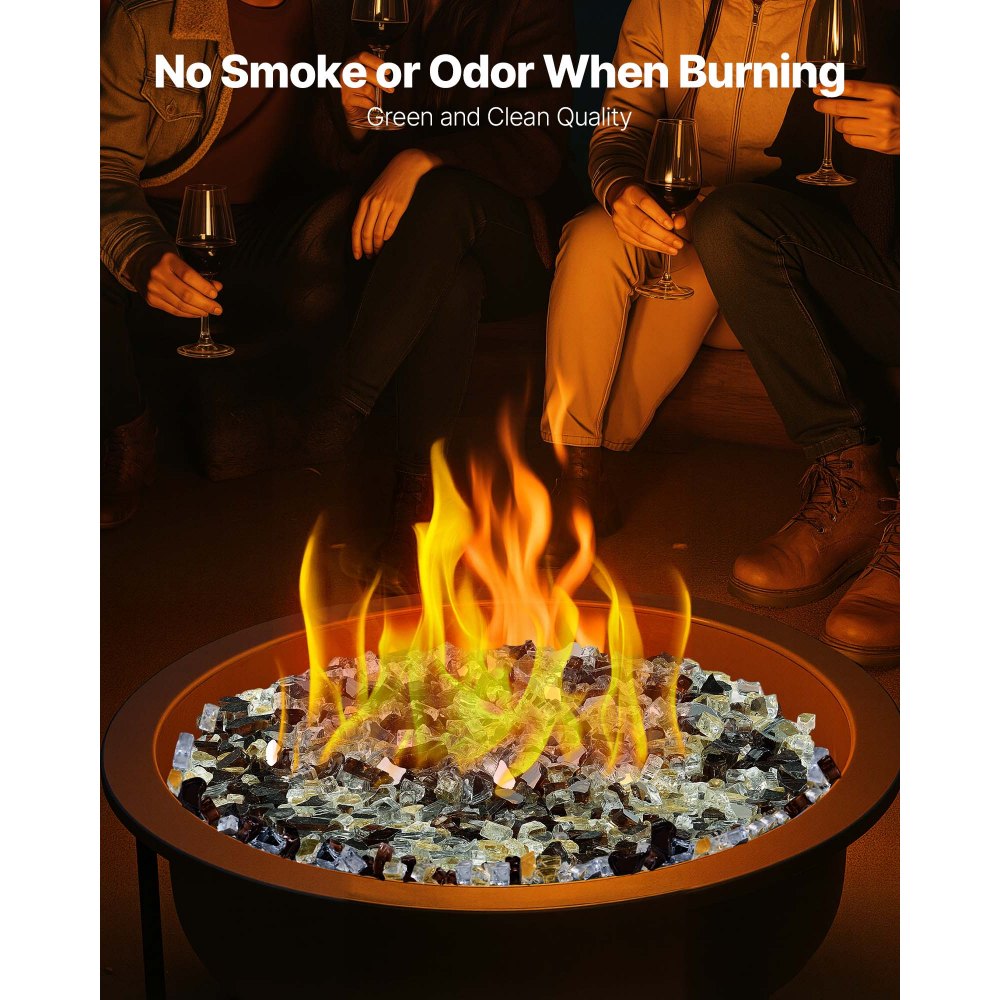 Ζωντανά χρώματα: 4,5 κιλά ανακλαστικού θρυμματισμένου γυαλιού για τζάκι, μεγέθους 12,7 mm, με ανάμειξη χαλκού+διαφανούς+χρυσού. Προσθέτει μια πολυτελή πινελιά σε κάθε περιβάλλον, λάμποντας έντονα την ημέρα και τρεμοπαίζοντας ζεστά τη νύχτα, δημιουργώντας μια ζεστή και ρομαντική ατμόσφαιρα. Πυρίμαχο γυαλί υψηλής θερμοκρασίας με σκληρυμένη επιφάνεια: Κατασκευασμένο από χαλαζιακή άμμο με ειδικές τεχνικές, αυτό το πυρίμαχο γυαλί είναι ισχυρότερο και πιο ανθεκτικό στις κρούσεις από το κανονικό γυαλί. Μπορεί να αντέξει υψηλές θερμοκρασίες χωρίς να ραγίσει ή να σκουρύνει. Δεν καπνίζει, δεν μυρίζει και δεν μένει στάχτη—απλώς ένα καθαρό, όμορφο χαρακτηριστικό γνώρισμα φωτιάς. Άνετη αποθήκευση και καθαρισμός: Η γυάλινη πέτρα για τζάκι αποθηκεύεται εύκολα και καταλαμβάνει λίγο χώρο. Ο καθαρισμός είναι εξαιρετικά εύκολος—απλώς ξεπλύνετε με νερό και ξύδι (1:1) για να επαναφέρετε τη διαυγή, λαμπερή λάμψη της. Αφήστε την να στεγνώσει πριν από τη χρήση για να αποφύγετε τυχόν κινδύνους ρωγμών. Ευρεία εφαρμογή: Όταν χρησιμοποιούνται σε μια εστία φωτιάς, αυτές οι πέτρες για εστία φωτιάς μπορούν να κρύψουν τους σωλήνες αερίου και να δημιουργήσουν ένα εκπληκτικό εφέ φλόγας για μια καλλιτεχνική εμφάνιση εστίας φωτιάς. Χάρη στην αστραφτερή ομορφιά τους, είναι επίσης ιδανικές για ενυδρεία, κήπους και άλλα περιβάλλοντα - ένας εύκολος τρόπος για να βελτιώσετε οποιαδήποτε διακόσμηση. Συμβουλή Χρήσης: Συνιστάται να γεμίσετε το τζάκι σας με γυάλινες πέτρες για το τζάκι σε βάθος 5-10 εκατοστών. Αυτός ο προσεγμένος σχεδιασμός αναδεικνύει τον άψογο συνδυασμό εμφάνισης και πρακτικότητας, βοηθώντας σας να δημιουργήσετε ένα μοναδικό τζάκι.