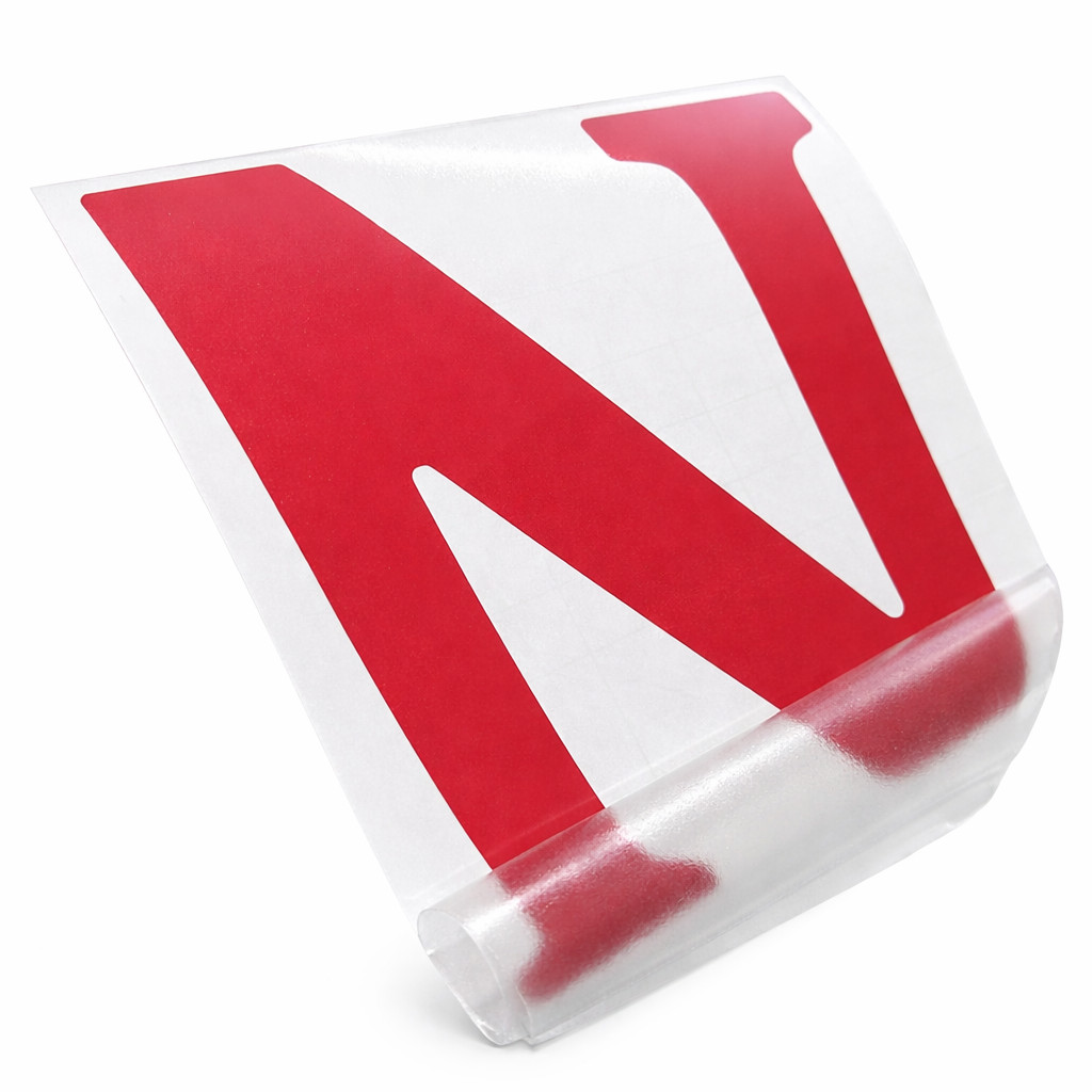 Τοποθετείται εξωτερικά στο πίσω μέρος του οχήματος και είναι σχεδιασμένο για να κάνει το διακριτικό Ν ευδιάκριτο. Το κόκκινο χρώμα ενισχύει την ορατότητα και διευκολύνει την άμεση αναγνώριση. Οι διαστάσεις 13 x 11,2 cm προσφέρουν σωστή αναλογία για καθαρή εικόνα χωρίς να επιβαρύνουν αισθητικά το όχημα. Παράλληλα, η αυτοκόλλητη εφαρμογή βοηθά στην εύκολη και γρήγορη τοποθέτηση.