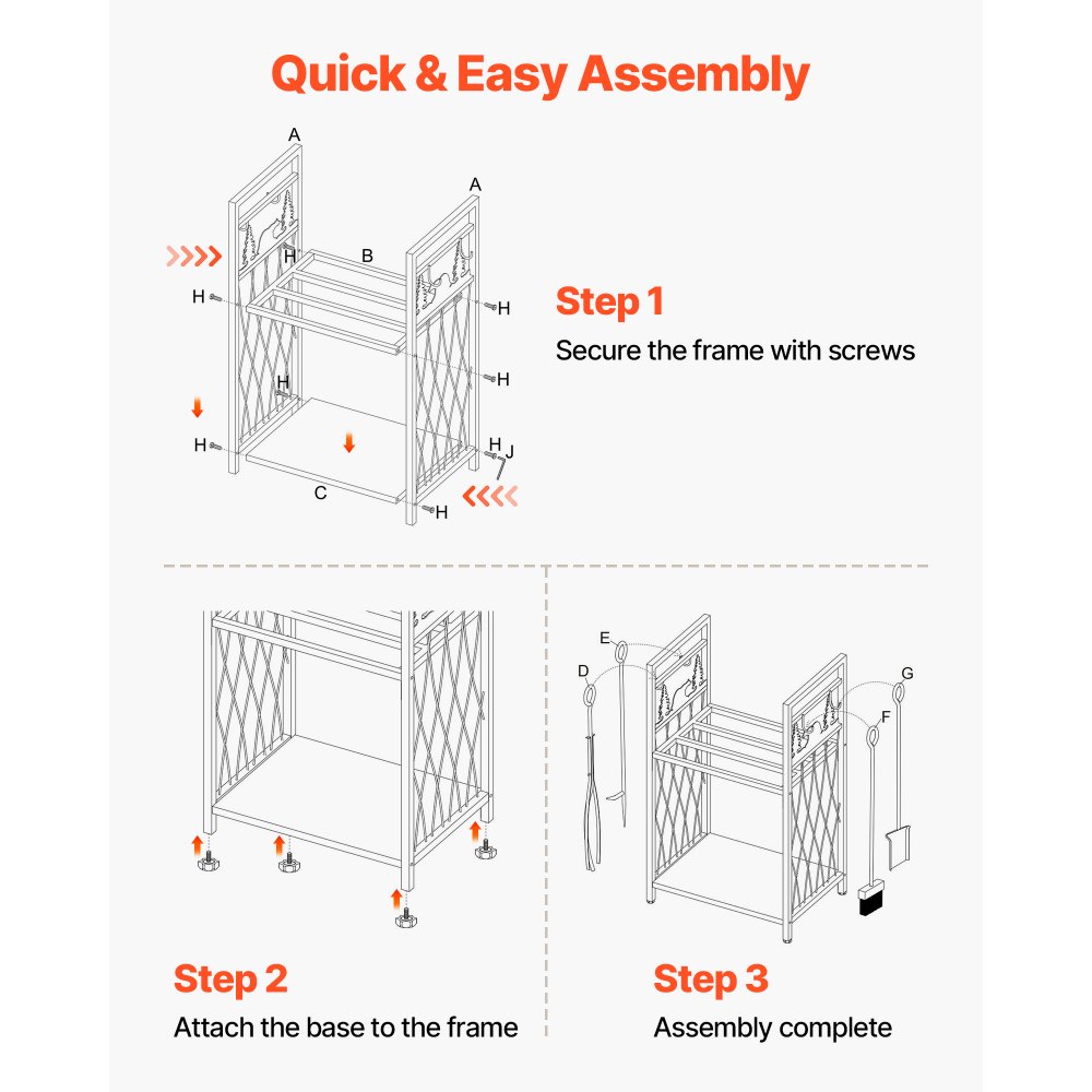 2-επιπέδων που υποστηρίζει 400 λίβρες: Κατασκευασμένη με ενισχυμένη δομή διπλής στρώσης, αυτή η σχάρα καυσόξυλων προσφέρει αξιοσημείωτη χωρητικότητα φορτίου 400 λίβρες, παρέχοντας βελτιωμένη σταθερότητα και άφθονο χώρο αποθήκευσης για κορμούς όλων των μεγεθών. Περιλαμβάνει 4 εργαλεία τζακιού: Η βάση για κορμούς μας διατίθεται πλήρης με λαβίδα, τσιγκούνα, σκούπα και φτυάρι—όλα κατασκευασμένα από ανθεκτικό σφυρήλατο σίδερο για μακροχρόνια απόδοση και βολική συντήρηση της φωτιάς. Κατασκευή από σφυρήλατο σίδηρο: Κατασκευασμένη από σφυρήλατο σίδηρο υψηλής αντοχής, αυτή η βάση αποθήκευσης κορμών προσφέρει εξαιρετική αντοχή στη σκουριά και μακροχρόνια ανθεκτικότητα, καθιστώντας την ιδανική τόσο για εσωτερική όσο και για εξωτερική χρήση. Γρήγορη και χωρίς εργαλεία συναρμολόγηση: Ο απλός σχεδιασμός επιτρέπει την εύκολη συναρμολόγηση σε λίγα λεπτά. Δεν απαιτούνται εργαλεία. Αφιερώστε λιγότερο χρόνο στη συναρμολόγηση και περισσότερο χρόνο απολαμβάνοντας τη ζεστασιά του τζακιού σας. Ενισχυμένη Γωνιακή Στήριξη: Η ξύλινη σχάρα μας για τζάκι διαθέτει στιβαρά ενισχυμένα γωνιακά στηρίγματα που παρέχουν πρόσθετη σταθερότητα, διατηρώντας τη σχάρα όρθια και ασφαλή σε σκληρές συνθήκες, όπως χιόνι ή βροχή—χωρίς ταλάντωση ή ανατροπή.