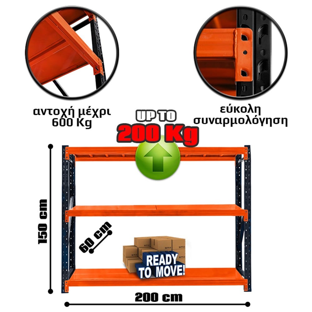 Ράφια Βαρέως Τύπου 150x200x60 Μαύρο-Πορτοκαλί