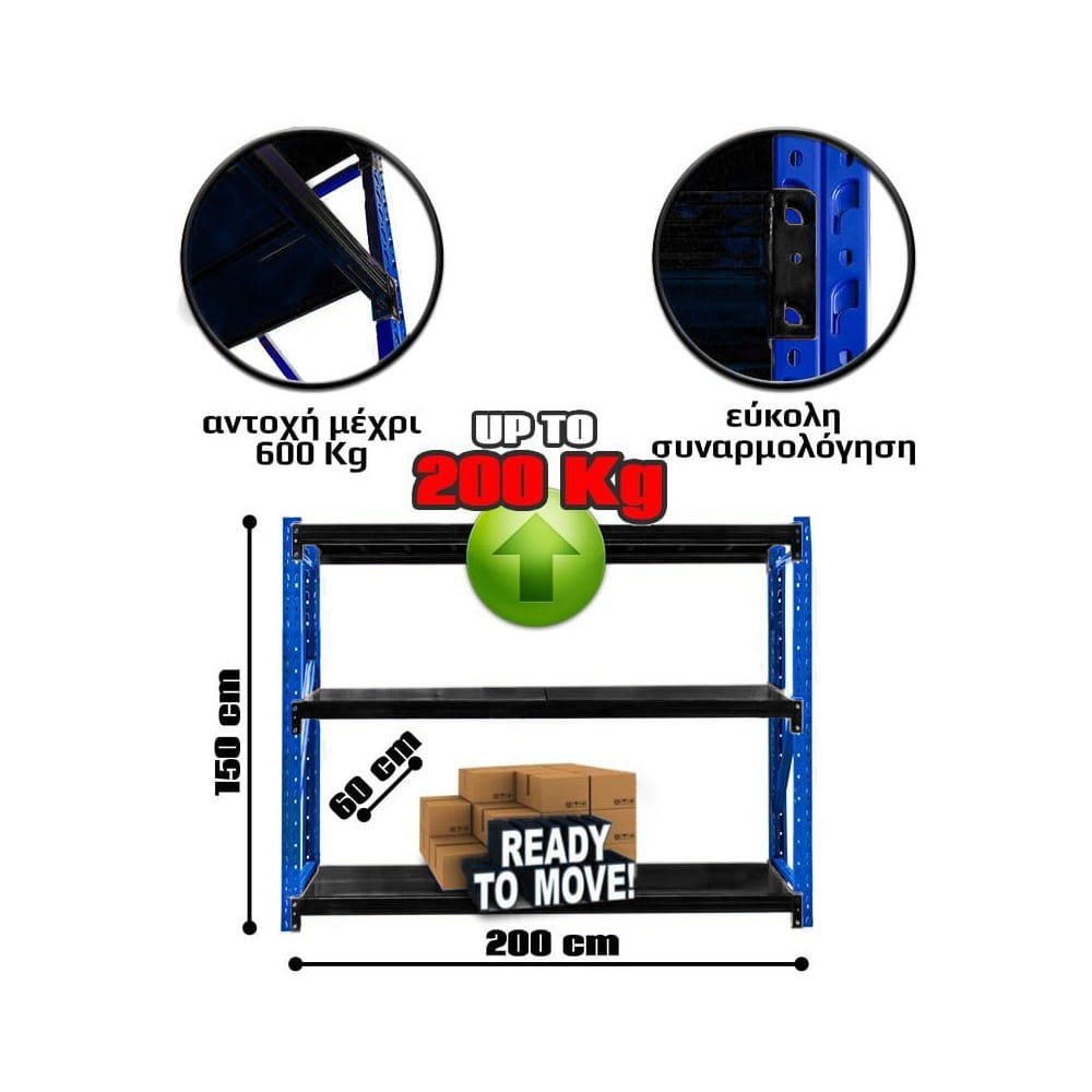 Ράφια Βαρέως Τύπου 150x200x60 Μπλε-Μαύρο
