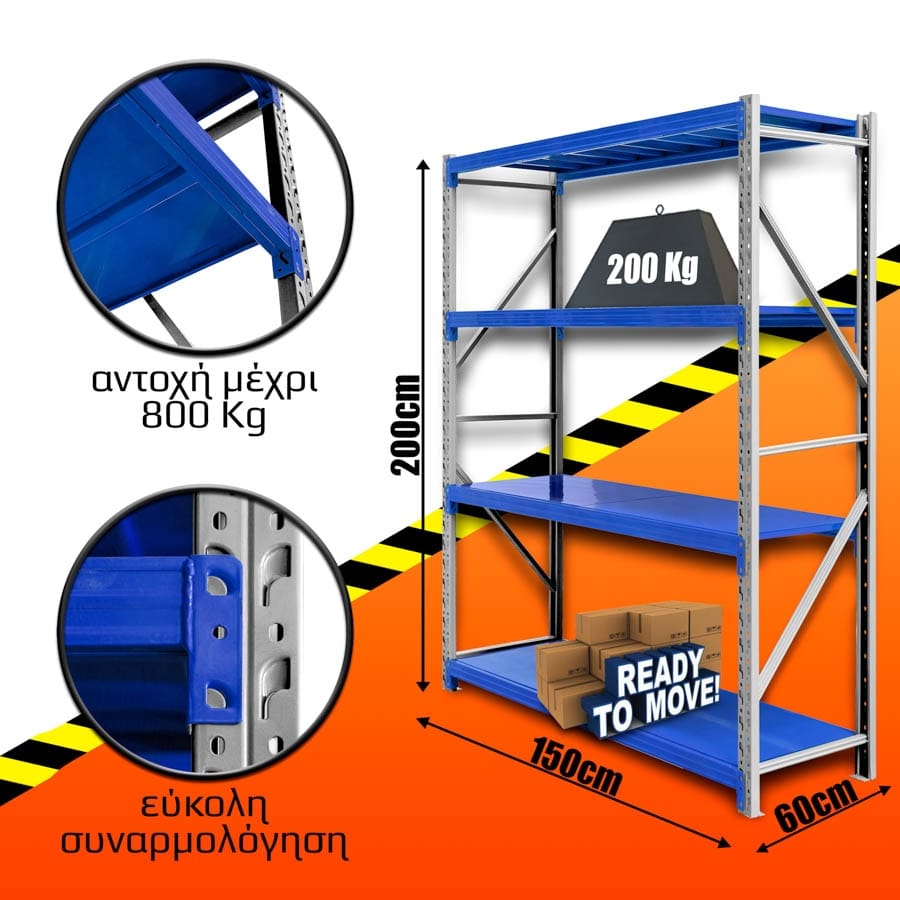 Ράφια Βαρέως Τύπου 200x150x60 Λευκό-Μπλε
