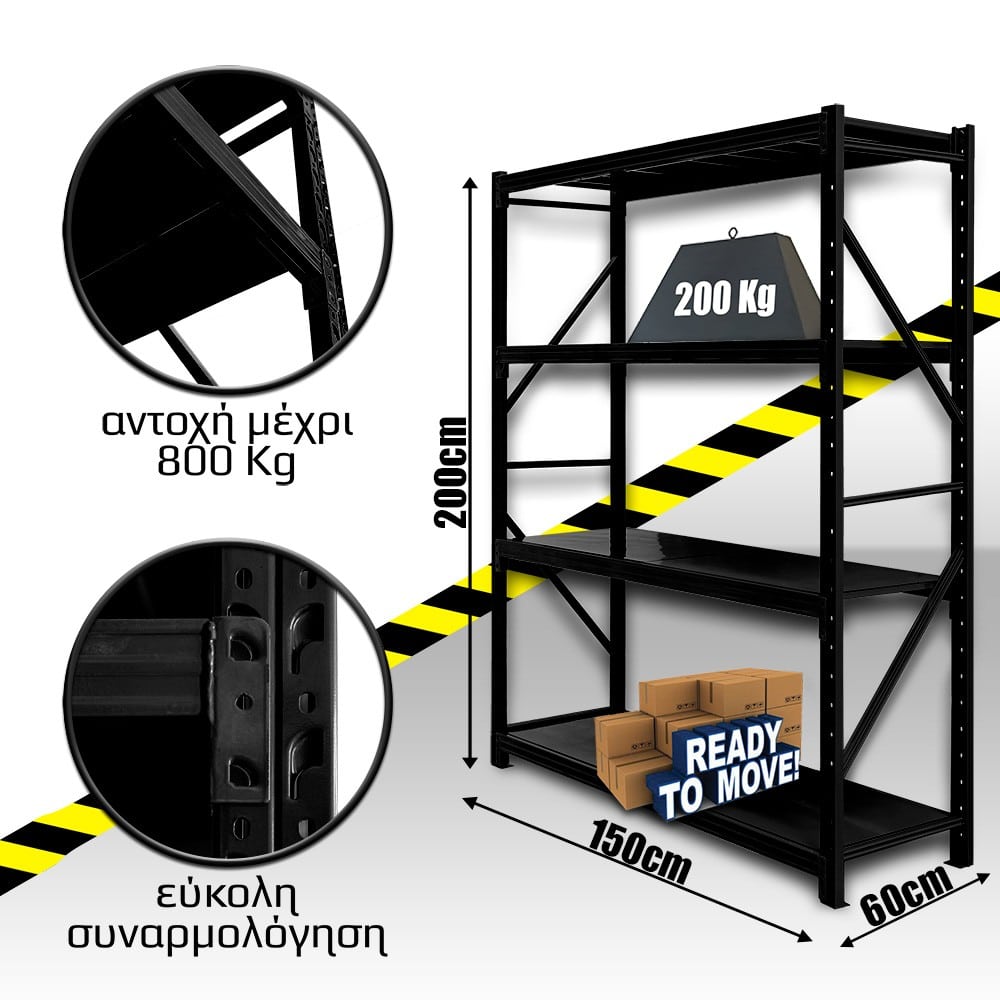 Ράφια Βαρέως Τύπου 200x150x60 Μαύρο