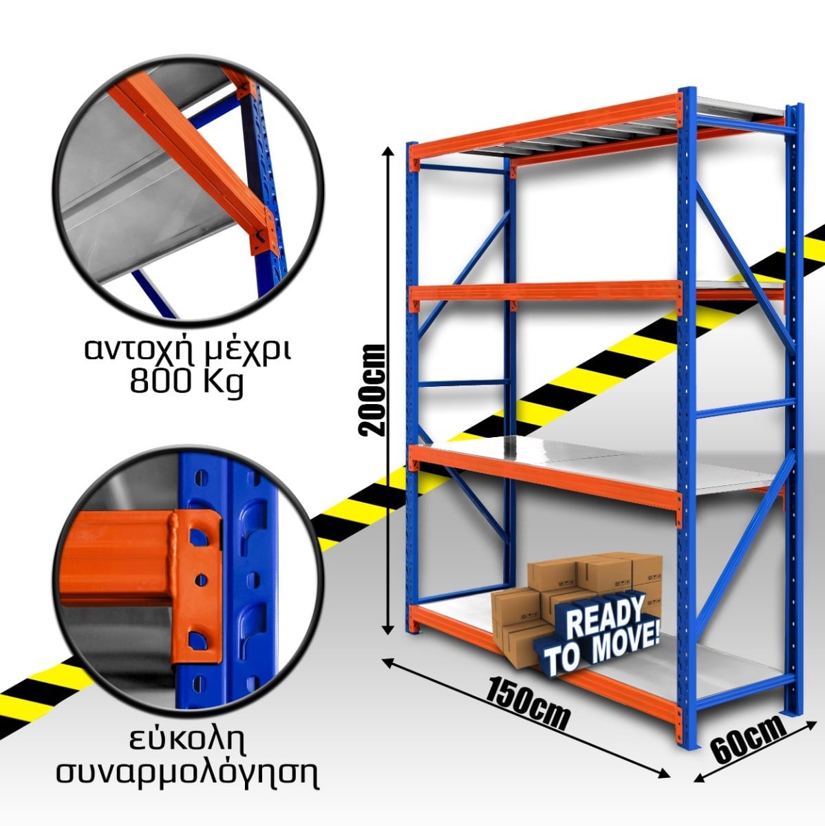 Επαγγελματικά Ράφια Επαυξημένης Χρήσης Βαρέων Φορτίων. -> Βιομηχανικός σχεδιασμός με αντοχή εφ'όρου ζωής. -> Κατασκευασμένα με ανθεκτικό κράμα από ατσάλι Q235B υψηλής ακρίβειας. -> Ειδικής μηχανοτεχνικής μελέτης CAD και χρήση νεύρων μετάλλου που προσφέρουν υποστήριξη φορτίου και μηδενική αστοχία. -> Βιομηχανική βαφή πούδρας με χρωματισμούς RAL διατηρεί τη μέγιστη διάρκεια στο χρόνο. -> Καινοτόμος σχεδιασμός χωρίς χρήση βίδας και εργαλείων με τη μέθοδο click n’ safe. -> Ανταποκρίνεται στις αυξημένες ανάγκες της σύγχρονης αποθήκης για γρήγορη και εύκολη εναλλαγή του ύψους των επιπέδων ανάλογα με τις διαφορετικές κατά περιόδους ανάγκες. Πρώτα η Ασφάλεια! Τα ράφια σας προσφέρουν 100% ασφάλεια ακόμη και όταν δεν υπάρχει φορτίο σε αυτά. Χάρη στην στιβαρή κατασκευή τους και στα μεγάλα πέλματα των τεσσάρων μεγάλων κάθετων δοκών, μπορείτε να αισθάνεστε ασφαλείς για την ακεραιότητα των εμπορευμάτων σας!   Υψηλή Ποιότητα Βιομηχανικής Παραγωγής! Η μελετημένη κατασκευή των ραφιών, χάρη στις εγκάρσιες στήλες καθ'όλο το μήκος της κάτω επιφάνειας, προσφέρει μοναδική ανθεκτικότητα στο προϊόν. Με ανοχή έως και 200 κιλά/επίπεδο, μπορείτε εύκολα, να αποθηκεύσετε σε αυτά εμπόρευμα συνολικού βάρους μέχρι και 1000 κιλών σε χρήση 5 επιπέδων/ραφιέρα.   Ταχεία Συναρμολόγηση & Άμεσες Αλλαγές! Η τεχνολογία click n’ safe σας επιτρέπει να συναρμολογήσετε τη ραφιέρα με ελάχιστες κινήσεις σε λιγότερο από 5 λεπτά και χωρίς τη χρήση εργαλείων! Επιπλέον, σας δίνει τη δυνατότητα να αποσυναρμολογήσετε και να επαναπροσδιορίσετε τις αποστάσεις μεταξύ των επιπέδων με ελάχιστη προσπάθεια! Πολλές Επιλογές Μεγέθους και Χρωμάτων! Επιλέξτε σύμφωνα με τις ανάγκες σας το κατάλληλο μέγεθος ραφιών! Με πληθώρα διαστάσεων, θα είναι “παιχνιδάκι” να ταιριάζετε τα έξυπνα ράφια σας σε οποιοδήποτε χώρο εσείς επιθυμείτε. Διαθέσιμα σε 3 χρώματα και όλους τους μεταξύ τους συνδυασμούς! ΟΛΑ ΕΤΟΙΜΟΠΑΡΑΔΟΤΑ! καθώς και τα απαραίτητα στελέχη που τα απαρτίζουν.   Μπορούμε να σας τα προμηθεύσουμε για να δημιουργήσετε την αποθήκη σας όπως ακριβώς την έχετε φανταστεί!     Σχεδιάζοντας μια Σύγχρονη Αποθήκη Η διαδικασία της αποθήκευσης αποτελεί ζωτικό παράγοντα για κάθε επιχείρηση. Τα Σύγχρονα Ράφια εξασφαλίζουν την καλύτερη πρόσβαση στα προϊόντα, καλύτερη αξιοποίηση του χώρου και προστασία των προϊόντων. Με τα Σύγχρονα Ράφια, η συλλογή των προϊόντων από τα ράφια της αποθήκης γίνεται ιδιαιτέρως απλή, ακόμη και σε νεότερους υπαλλήλους λόγω της άμεσης ορατότητας με το προϊόν. Τα ράφια μπορούν να αλλάζουν ύψος πολύ εύκολα, χάρη στους νεότερους σχεδιασμούς τεχνολογιών click n’ safe που αποτελούν το πιο διαδεδομένο αποθηκευτικό σύστημα παγκοσμίως! Προσφέρουν την καλύτερη αξιοποίηση χώρου, τόσο σε ύψος όσο και σε εμβαδόν. Λόγω της δυνατότητας της μετακίνησης τους, παρέχετε ευελιξία για κάθε είδος ενδοδιακίνησης φορτίου. Μπορούν να εφαρμοστούν σε στενούς και φαρδύτερους διαδρόμους. Τα Σύγχρονα Ράφια αποθήκευσης σχεδιάζονται με γνώμονα την εφ’ όρου ζωής χρήση τους, μέσω προγραμμάτων μηχανοτεχνικής μελέτης CAD και τη χρήση νεύρων μετάλλου θωρακίζονται με μέγιστη αντοχή και μηδενική αστοχία. Οι οικολογικές βαφές πούδρας που εφαρμόζει η σύγχρονη βιομηχανία, εξασφαλίζουν μέγιστη αντιοξειδωτική αντοχή, με πάχος κάλυψης βαφής τουλάχιστον 1mm, διασφαλίζοντας την άνευ ορίων μηχανική τριβή των φορτίων. Ανθεκτικά κράματα ατ