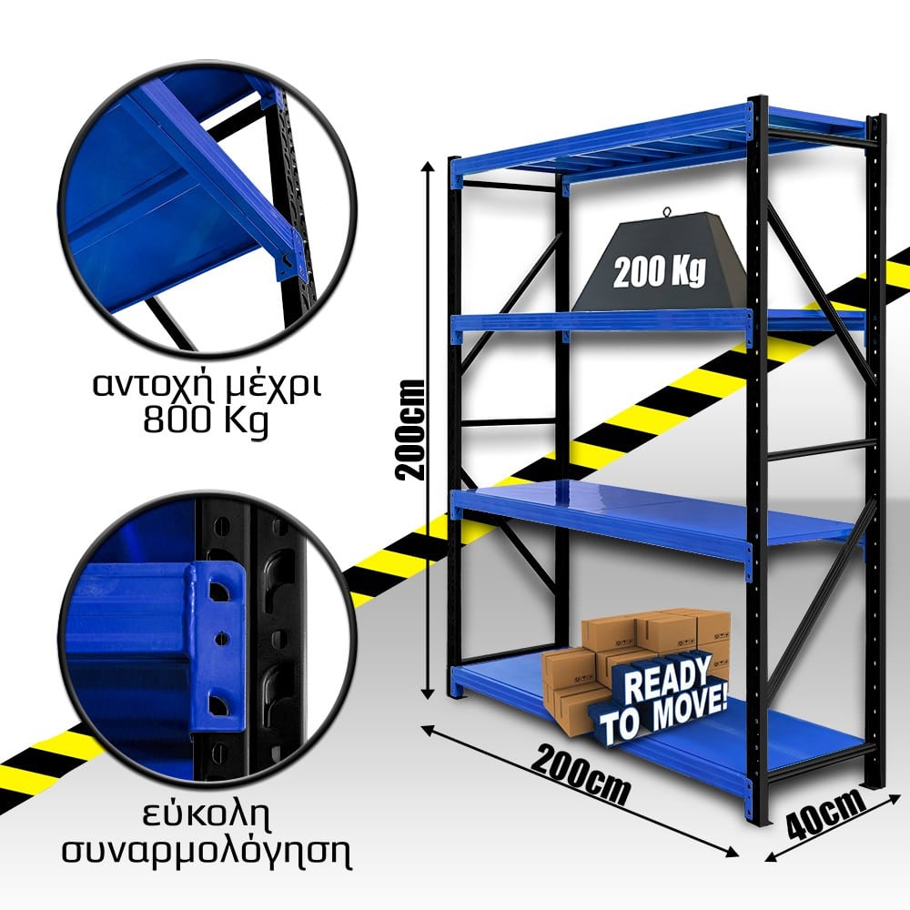 Ράφια Βαρέως Τύπου 200x200x40 Μαύρο-Μπλε
