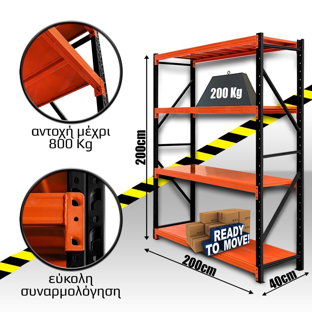Ράφια Βαρέως Τύπου 200x200x40 Μαύρο-Πορτοκαλί