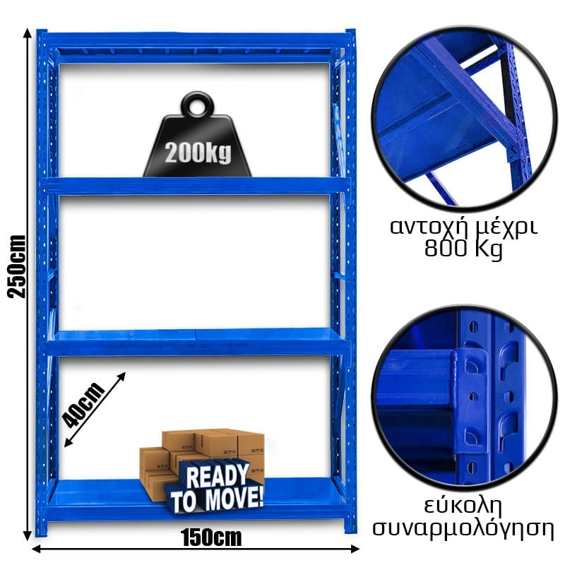 Ράφια Βαρέως Τύπου 250x150x40 Μπλε