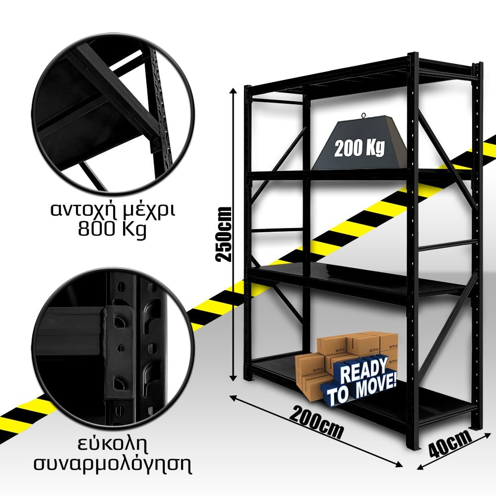 Ράφια Βαρέως Τύπου 250x200x40 Μαύρο