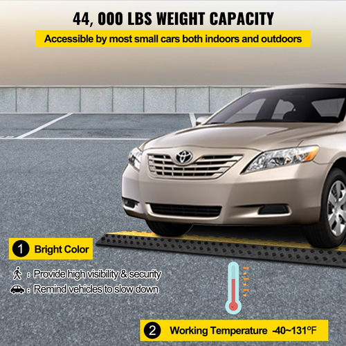 Μέγιστη. Χωρητικότητα 44000 λίβρες: Το παραδοσιακό μαύρο+κίτρινο χρώμα παρέχει μεγαλύτερη ορατότητα τη νύχτα και σε περιβάλλοντα χαμηλού φωτισμού. Η ράμπα προστασίας καλωδίων ενσωματώνει ένα μοναδικό σχέδιο στην εμφάνισή της για να τραβήξει την προσοχή των περαστικών και των οδηγών για να επιβραδύνουν. Η χωρητικότητα φορτίου 44.000 λίβρες διασφαλίζει ότι μπορείτε να οδηγείτε το αυτοκίνητό σας πάνω από τη ράμπα χωρίς να επηρεάζετε τα καλώδια που τρέχουν μέσα.