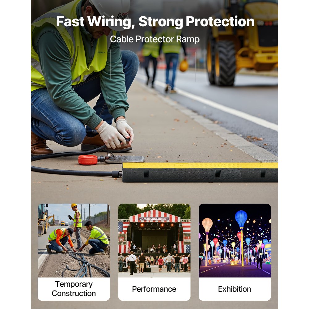Γρήγορη Δρομολόγηση Καλωδίων: Απλώς ανοίξτε το επάνω κάλυμμα για να τοποθετήσετε τα καλώδιά σας γρήγορα. Δεν χρειάζεται να αποσυναρμολογήσετε ή να επιβραδύνετε την εγκατάσταση. Η ράμπα προστασίας καλωδίων μας είναι ιδανική για κατασκευαστικά έργα, αθλητικές εκδηλώσεις, εμπορικές εκθέσεις, συναυλίες και φεστιβάλ. Ικανότητα φορτίου 22.000 λίβρες/άξονα: Κατασκευασμένο ανθεκτικό για να χειρίζεται την κυκλοφορία βαρέων φορτηγών χωρίς ρωγμές ή στρεβλώσεις. Η καλωδιακή ράμπα μας υποστηρίζει SUV, φορτηγά, αναπηρικά αμαξίδια, μοτοσικλέτες, ποδήλατα, σκούτερ και καροτσάκια σε ανώμαλο έδαφος ή κράσπεδα. Η ασφάλεια προέχει: Η αντιολισθητική ανάγλυφη επιφάνεια μειώνει τον κίνδυνο ολίσθησης των τροχών και ολίσθησης των πεζών, ακόμη και σε βροχή ή χιόνι. Αυτό το προστατευτικό καλωδίου από καουτσούκ εξασφαλίζει ασφαλείς διαβάσεις τόσο για οχήματα όσο και για άτομα. Εύκολη εγκατάσταση: Διαθέτει μεγάλο κανάλι καλωδίου, αυτό το κάλυμμα καλωδίου δαπέδου μπορεί να φιλοξενήσει πολλαπλούς τύπους καλωδίων. Συνδέονται μεταξύ τους σαν δομικά στοιχεία για γρήγορη εγκατάσταση, παραμένοντας σταθερά στη θέση τους, διατηρώντας παράλληλα τα πάντα τακτοποιημένα και οργανωμένα. Ευέλικτη για Οποιαδήποτε Τοποθεσία: Αυτή η ράμπα από καουτσούκ με καλώδιο είναι κατάλληλη για χώρους στάθμευσης, αυτοκινητόδρομους, εμπορικά κέντρα, αθλητικά γήπεδα και εργοτάξια. Σημείωση: Τα προϊόντα από καουτσούκ ενδέχεται να έχουν μια προσωρινή φυσική οσμή. Για εσωτερική χρήση, αφήστε τα να αεριστούν πριν από την εγκατάσταση.