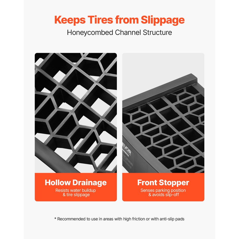 Υψηλή ικανότητα φόρτωσης: Αυτό το σετ ράμπας αυτοκινήτου 4 τεμαχίων έχει ισχυρή ικανότητα φόρτωσης. Κάθε ράμπα αντέχει έως και 2.500 κιλά, δύο ράμπες αντέχουν 10.000 κιλά και και οι τέσσερις ράμπες αντέχουν 9.000 κιλά. Αυτό το σετ μπορεί εύκολα να ανυψώσει το όχημά σας με μικτό βάρος (GVW) 9.000 κιλά. Κατάλληλο για οχήματα με χαμηλό σασί: Με ύψος ανύψωσης 2,56 ίντσες και κλίση 9°, αυτές οι ράμπες ανύψωσης αυτοκινήτων είναι ιδανικές για αυτοκίνητα με χαμηλό σασί, ανυψώνοντας τα οχήματα αποφεύγοντας τις γρατζουνιές στο κάτω μέρος του αμαξώματος. Ένας σχεδιασμός 4 θέσεων ταιριάζει σε ανάγκες μεγαλύτερου φορτίου ή ανύψωσης και των δύο ελαστικών ταυτόχρονα. Ανθεκτικό Υλικό: Κατασκευασμένες από ανθεκτικό στις κρούσεις PP, αυτές οι ράμπες σέρβις αυτοκινήτων προσφέρουν ισχυρή αντοχή στις καιρικές συνθήκες και τη διάβρωση για μακροχρόνια χρήση. Ελαφριές και στοιβαζόμενες, μπορούν εύκολα να αποθηκευτούν στο πορτμπαγκάζ σας και να μεταφερθούν όποτε χρειάζεται. Ειδικός Σχεδιασμός: Οι ράμπες αλλαγής λαδιών μας διαθέτουν κυψελοειδή επιφάνεια για αύξηση της τριβής και βελτίωση της αποστράγγισης, η οποία μειώνει τη συσσώρευση υγρασίας και την ολίσθηση του ελαστικού. Το καμπύλο σχήμα εφαρμόζει με ασφάλεια στο ελαστικό, διατηρώντας το όχημα σταθερό και σταθερό στη θέση του. Ευέλικτη χρήση: Αυτές οι ράμπες αυτοκινήτων χαμηλού σασί συνιστώνται να συνδυάζονται με γρύλο ή βάσεις γρύλου για σταθερή και ασφαλή ανύψωση οχημάτων. Δημιουργούν άφθονο χώρο για αλλαγές λαδιών, επιθεωρήσεις και γενικές επισκευές.