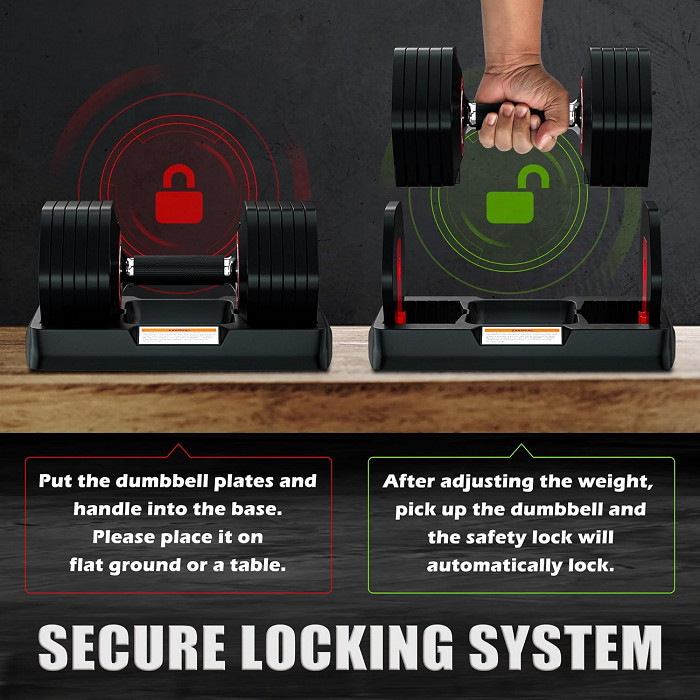 Ρυθμιζόμενος αλτήρας γυμναστικής με βάση, σχεδιασμένος με καινοτόμο σύστημα ρύθμισης βαρών που αντικαθιστά πλήρως ένα ολόκληρο σετ παραδοσιακών αλτήρων.
