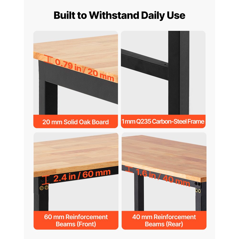 Αριθμός μοντέλου αντικειμένου: WB4823Μέγεθος πάγκου εργασίας: 48 x 23,6 ίντσες / 1220 x 600 χιλ.Εύρος ύψους: 26,3-40,2 ίντσες / 670-1020 χιλιοστάΧωρητικότητα φορτίου: 680 κιλά / 1.500 λίβρεςΠάχος επιφάνειας τραπεζιού: 20 mmΚύρια υλικά: Q235 χάλυβας & δρυς πίνακαςΔιαστάσεις προϊόντος: 48 x 23,6 x 26,3-40,2 ίντσες / 1220 x 600 x 670-1020 χιλιοστά