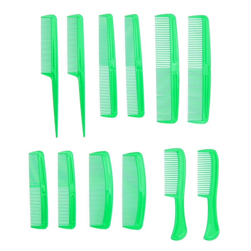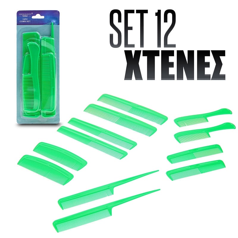 Σετ από δώδεκα πλαστικές χτένες με πυκνά δόντια. Κατάλληλες για διαφορετικές κομμωτικές εργασίες, όπως κρεπάρισμα, κούρεμα και ξέμπλεγμα μαλλιών. Χαρακτηριστικά: Υλικό: Πλαστικό Διαστάσεις: 20.5 x 2.5cm (2τμχ.) 18.5 x 3.5cm (2τμχ.) 17 x 2,5cm (2τμχ.) 15 x 3.5cm (2τμχ.) 12.5 x 3.5cm (2τμχ.) 12.5 x 2.5cm (2τμχ.) DOA 14 Ημερών