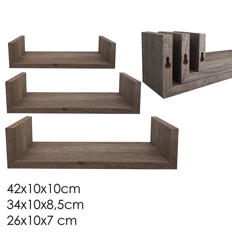 Σετ 3 Ράφια Τοίχου Γκρι