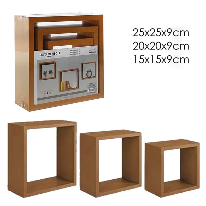Σετ 3 Ράφια Τοίχου Κύβος Natural