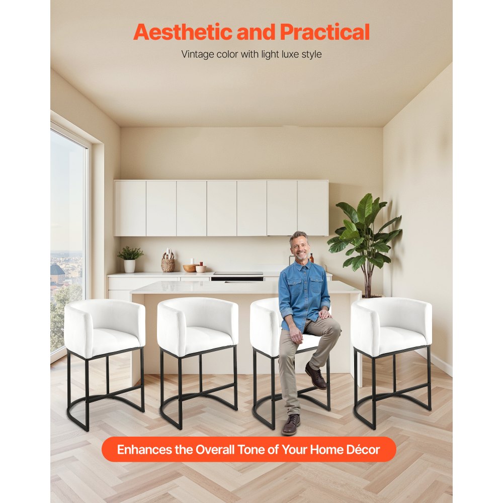 Ισχυρή και σταθερή στήριξη βάρους: Τα σκαμπό μπαρ διαθέτουν χοντρούς σωλήνες από σίδηρο με σταθερή δομή, προσφέροντας μέγιστη ικανότητα φόρτωσης βάρους έως 159 κιλά. Τα πόδια των σκαμπό είναι επικαλυμμένα με φινίρισμα ψεκασμού για αντοχή στη σκουριά και τις γρατσουνιές. Πυκνωμένη πλάτη άνεσης: Το σκαμπό μπαρ είναι εξοπλισμένο με φαρδιά πλάτη που ακολουθεί τη φυσική καμπύλη της σπονδυλικής στήλης. Η εξαιρετικά παχιά επένδυση προσφέρει μια αίσθηση τυλίγματος σαν καναπέ, εξασφαλίζοντας άνεση κατά τη διάρκεια των γευμάτων, της εργασίας ή των συγκεντρώσεων χωρίς καταπόνηση της πλάτης. Εύκολη συναρμολόγηση και συντήρηση: Τα σκαμπό σε ύψος πάγκου χρησιμοποιούν μια κοντή, βελούδινη επιφάνεια. Ένα απλό σκούπισμα με ένα στεγνό πανί θα τα διατηρήσει πεντακάθαρα. Συνοδεύεται από εργαλεία εγκατάστασης, η συναρμολόγηση είναι απλή και φιλική προς τους αρχάριους, επιτρέποντας γρήγορη εγκατάσταση. Πρακτικό σετ: Το σετ περιλαμβάνει 3 σκαμπό μπαρ, διαστάσεων 22,24x20,28x34,25 ίντσες το καθένα, με ύψος καθίσματος 25 ίντσες. Αυτή η καρέκλα μπαρ είναι ιδανική για μεγαλύτερες οικογένειες ή ανοιχτές διαρρυθμίσεις κουζίνας, για μετάβαση μεταξύ φαγητού, κοινωνικοποίησης και δραστηριοτήτων γραφείου. Ελαφριά πολυτέλεια και ευελιξία: Το απαλό, άνετο βελούδινο περίβλημα σε συνδυασμό με την φαρδιά πλάτη, είναι κατάλληλο τόσο για οικιακούς όσο και για επαγγελματικούς χώρους. Το κανονικό ύψος καθίσματος ταιριάζει σε διάφορους κανονικούς πάγκους μπαρ και νησίδες κουζίνας.