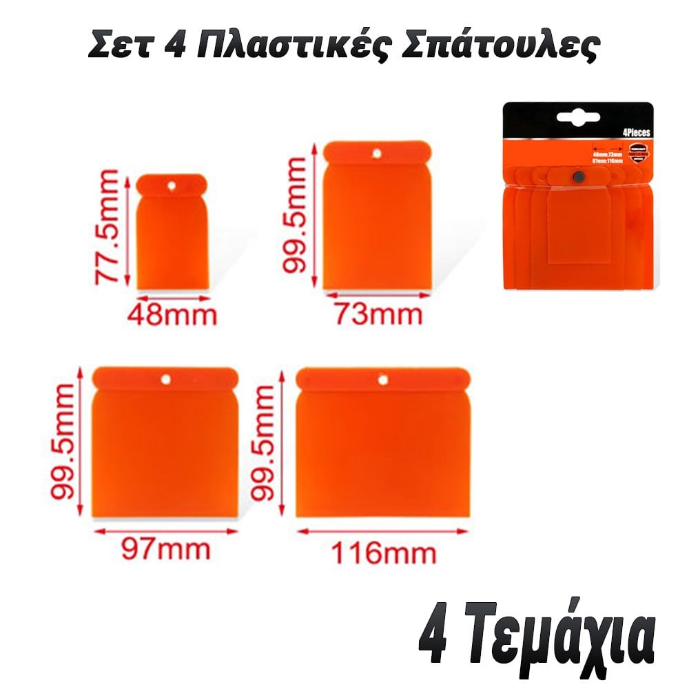 Σετ 4 Πλαστικές Σπάτουλες – Ευχρηστο και Απαραίτητο Εργαλείο για Κάθε Εργασία! Το Σετ 4 Πλαστικών Σπατουλών είναι το ιδανικό εργαλείο για κάθε επαγγελματία ή λάτρη του DIY που χρειάζεται ακριβή και καθαρή εργασία. Οι πλαστικές σπάτουλες είναι ανθεκτικές και ελαφριές, προσφέροντας μεγάλη ευκολία στην εφαρμογή υλικών όπως χρώματα, κόλλες, γύψοι, ή τσιμέντο, χωρίς να προκαλούν γρατζουνιές ή ζημιές στις επιφάνειες. Χαρακτηριστικά: ✔ Πλαστική Κατασκευή – Ανθεκτικές και ελαφριές, για άνετη χρήση χωρίς να προκαλούν φθορές στις επιφάνειες.✔ Σετ 4 Τεμαχίων – Ποικιλία σε μεγέθη για να καλύψουν τις διαφορετικές ανάγκες εργασίας.✔ Πρακτική Λαβή – Σχεδιασμένες για άνετο κράτημα, προσφέροντας ακρίβεια και έλεγχο.✔ Ιδανικές για Πολυάριθμες Εφαρμογές – Χρησιμοποιούνται για εφαρμογή χρωμάτων, κόλλας, σφράγιση και διαμόρφωση υλικών.✔ Εύκολες στον Καθαρισμό – Μετά τη χρήση, καθαρίζονται εύκολα και γρήγορα για επόμενη χρήση. Ανακαλύψτε το Σετ 4 Πλαστικών Σπατουλών για άψογο αποτέλεσμα σε κάθε κατασκευαστική ή επισκευαστική εργασία!
