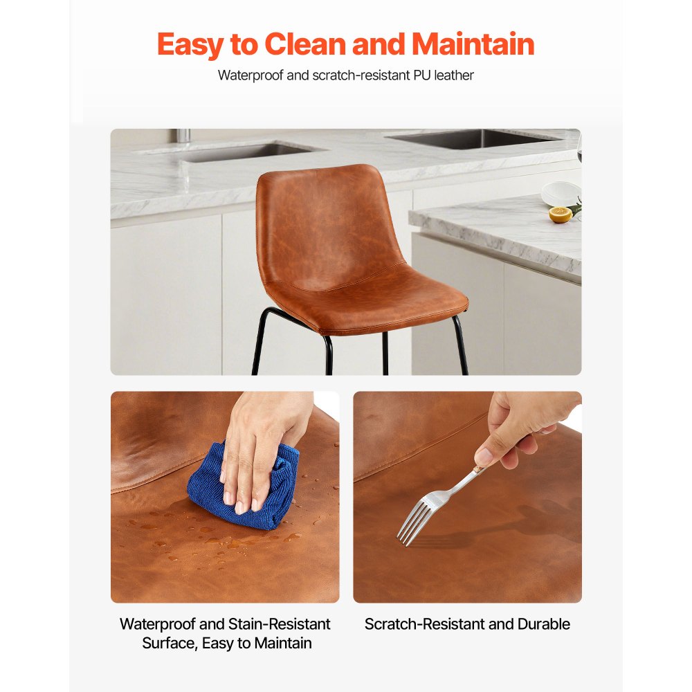Ισχυρή και σταθερή στήριξη βάρους: Τα σκαμπό μπαρ διαθέτουν χοντρούς σωλήνες από σίδηρο με σταθερή δομή, προσφέροντας μέγιστη ικανότητα φόρτωσης βάρους έως 150 κιλά. Τα πόδια των σκαμπό είναι επικαλυμμένα με φινίρισμα ψεκασμού για αντοχή στη σκουριά και τις γρατσουνιές. Άνετα τυλιγμένο κάθισμα: Το σκαμπό μπαρ διαθέτει εργονομική καμπύλη πλάτη που προσαρμόζεται φυσικά στη σπονδυλική στήλη, παρέχοντας σταθερή στήριξη και μειώνοντας την κόπωση από την παρατεταμένη καθιστική ζωή. Ιδανικό για φαγητό, συνομιλία ή πολύωρες επαγγελματικές συνεδρίες. Εύκολη συναρμολόγηση και συντήρηση: Τα σκαμπό ύψους πάγκου είναι κατασκευασμένα από αδιάβροχο δέρμα PU. Ένα απλό σκούπισμα με ένα στεγνό πανί θα τα διατηρήσει πεντακάθαρα. Συνοδεύεται από εργαλεία εγκατάστασης, η συναρμολόγηση είναι απλή και φιλική προς τους αρχάριους, επιτρέποντας γρήγορη εγκατάσταση. Πρακτικό σετ: Το σετ περιλαμβάνει 4 σκαμπό μπαρ, διαστάσεων 17,72x19,88x37,2 ίντσες το καθένα, με ύψος καθίσματος 25,6 ίντσες. Αυτή η καρέκλα μπαρ είναι ιδανική για μεγαλύτερες οικογένειες ή ανοιχτές διαρρυθμίσεις κουζίνας, για μετάβαση μεταξύ φαγητού, κοινωνικοποίησης και δραστηριοτήτων γραφείου. Ελαφριά πολυτέλεια και ευελιξία: Το vintage καφέ δέρμα PU σε συνδυασμό με την κομψή καμπυλωτή πλάτη, είναι κατάλληλο τόσο για οικιακούς όσο και για επαγγελματικούς χώρους. Το κανονικό ύψος καθίσματος ταιριάζει σε διάφορους κανονικούς πάγκους μπαρ και νησίδες κουζίνας.