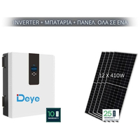 Το σετ περιλαμβάνει τον μονοφασικό υβριδικό inverter 6kW (SKU 11529) και την μπαταρία LiFePO4 5.12kWh 51.2V (SKU 11377), ιδανικά για αποδοτική διαχείριση και αποθήκευση ενέργειας σε οικιακά φωτοβολταϊκά συστήματα με μέση ενεργειακή ανάγκη.