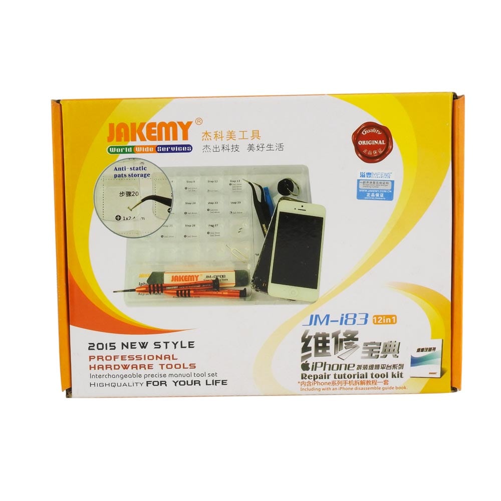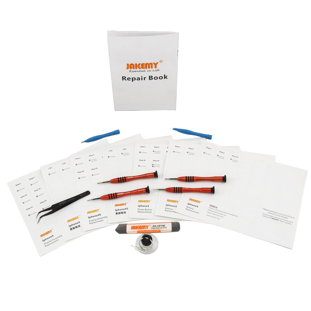 Σετ αποσυναρμολόγησης JM-I83 απο την JAKEMY. Ένα σετ αποσυναρμολόγησης με κατσαβίδια και άλλα χρήσιμα εργαλεία απαραίτητα για όλα τα εργαστήρια ηλεκτρονικών, τεχνικών smartphones. Κατάλληλο για αποσυναρμολογήσεις και επισκευές iPhone 4/ 4S/ 5/ 6/ 6 Plus διότι περιέχει ειδικό λεπτομερές εγχειρίδιο για την επισκευη αυτών. Με την εργονομική και περιστρεφόμενη λαβή των κατσαβιδιών μπορείτε να δουλεύετε ξεκούραστα, καθως και με τα υπόλοιπα εργαλεία η επισκευή των Iphone θα γίνει παιχνιδάκι για εσάς. Περιεχόμενα: Εργαλεία: 1 Κατσαβίδι Pentable (Star) 0.8 1 Κατσαβίδι Phillips 1.5 1 Κατσαβίδι Phillips 2.0 1 Κατσαβίδι Slotted 2.0 1 Γωνιακή προσέλα (JM-T1-15) 2 Πλαστικά Stick ανοίγματος 1 Ισχυρή βεντούζα με ακίδα για Sim Tray 1 Μεταλλικό ανοιχτήρι (JM-OP08) 1 Βιβλιαράκι με οδηγείες αποσυναρμολόγησης-επισκευής iPhone 1 Αντιστατική θήκη για βίδες και εξαρτήματα 8 Πίνακες "Οδηγοί" με βήματα αποσυναρμολόγησης που μπορούν να τοποθετηθούν κάτω απο την αντιστατική θήκη DOA 14 ημερών