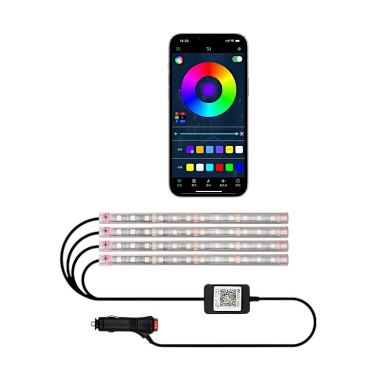 Δώστε ζωντάνια και στυλ στο εσωτερικό του αυτοκινήτου σας με το σετ 4 RGB LED λαμπών ατμοσφαιρικού φωτισμού, μήκους 22 cm και ισχύος 12V.