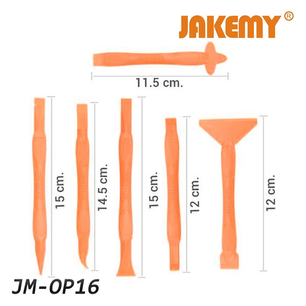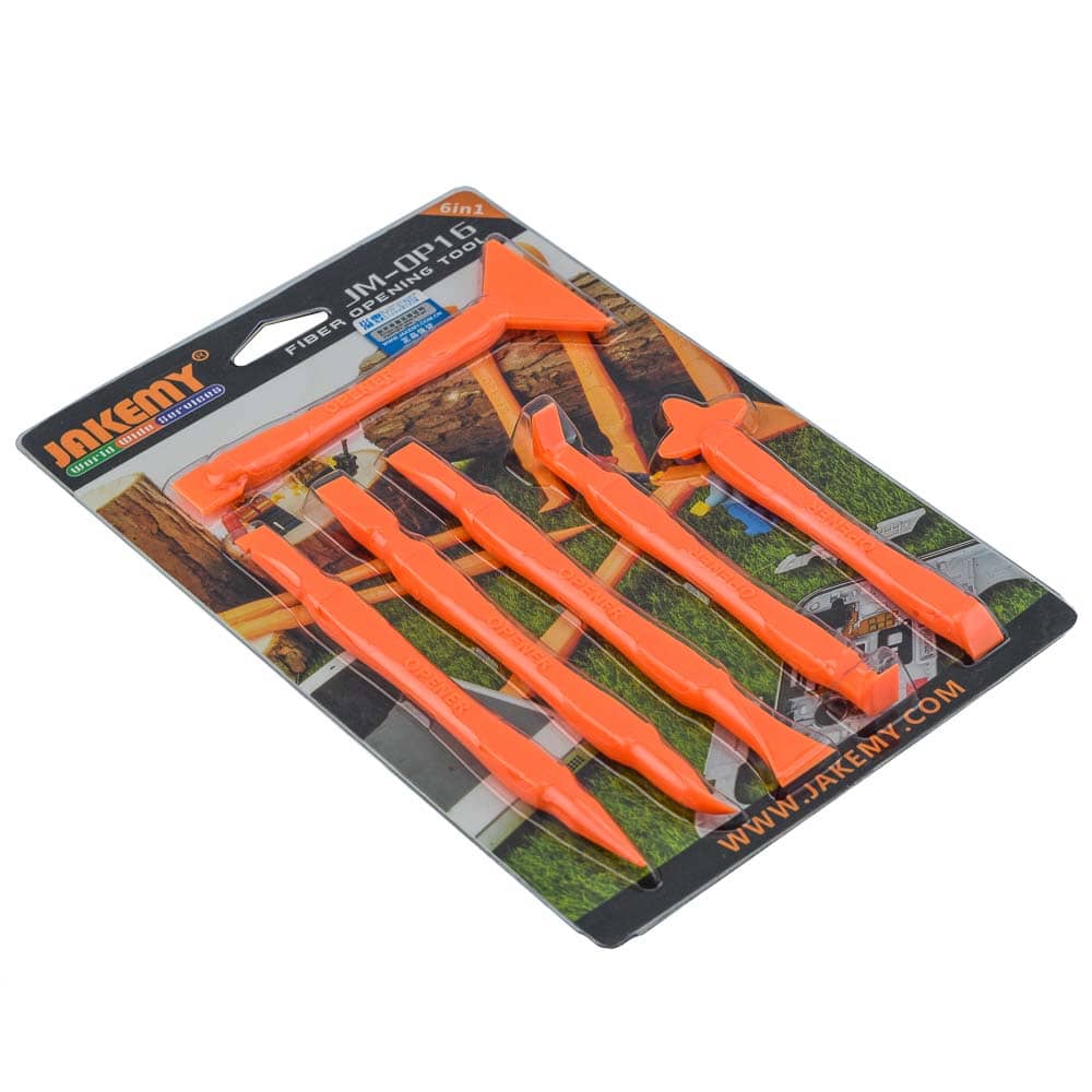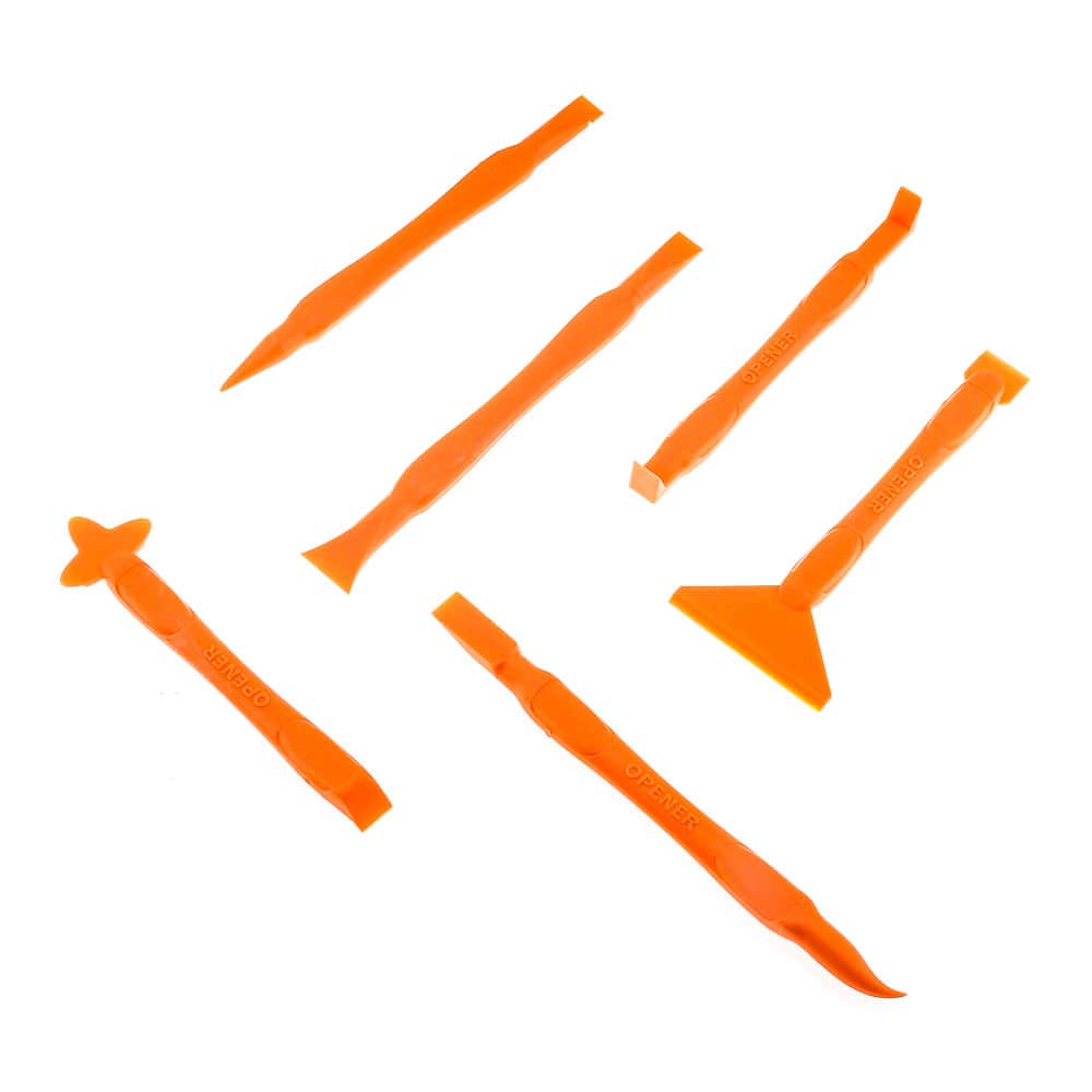 Σετ πλαστικών εργαλείων αποσυναρμολόγησης, απαραίτητο για την ασφαλή αλλά και γρήγορη εργασία στο άνοιγμα των laptop, κινητών, tablet και άλλων ηλεκτρονικών συσκευών. Φτιαγμένα από ποιοτικό αντιστατικό πλαστικό (fiber plastic).1 γωνιακό πλατύ πλαστικό stick opener με 2 απολήξεις.2 πλατιά πλαστικό stick opener με 2 απολήξεις.1 πλαστικό stick opener σε σχήμα σταυρού και με πλατιά μύτη.2 πλαστικά stick opener με πλατιά και μυτερή άκρη σε κάθε μεριά αντίστοιχα.Ποιοτικό αντιστατικό πλαστικό (fiber plastic).Εργονομικό κράτημα για ξεκούραστη και γρήγορη εργασία.