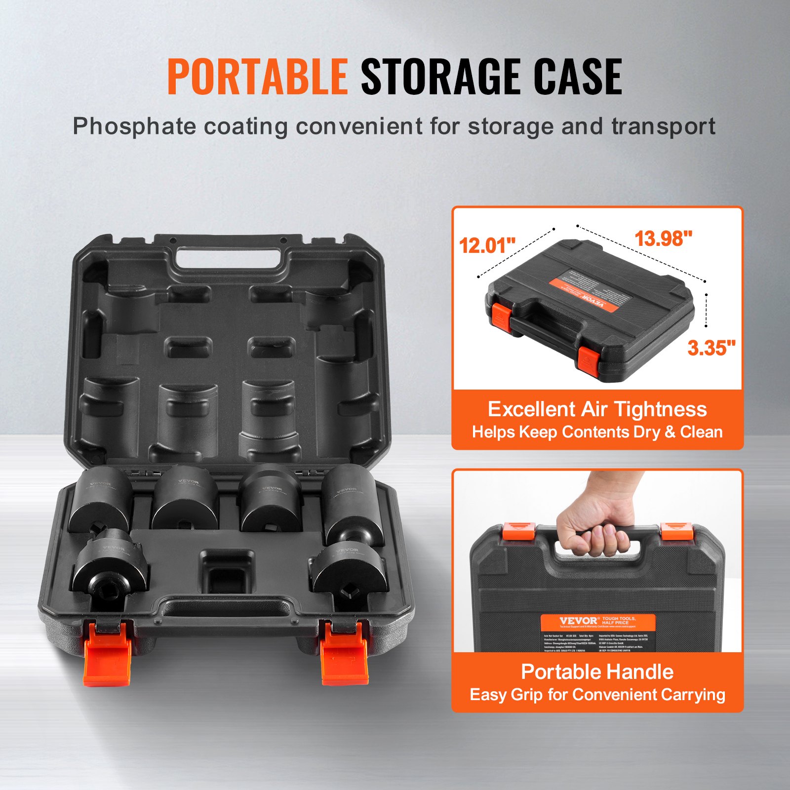 Σετ παξιμαδιών 1/2 ιντσών: Αυτό το κιτ εργαλείων υποδοχή παξιμαδιών ατράκτου περιλαμβάνει 6 διαφορετικά μεγέθη υποδοχής: 2-3/4" x 4 Εξωτερικό ωτίο, 2-5/8" x 6 Εξωτερικό ωτίο, 2-3/8" x 4 Εξωτερικό ωτίο, 2-1/2" x 4 Εσωτερικό ωτίο, 2-1/4" x 4 Εσωτερικό ωτίο και εξολκέα μπροστινού άξονα FWD Συμβατό με μεγάλη γκάμα οχημάτων, επιτρέπει την αποτελεσματική αφαίρεση των παξιμαδιών πλήμνης τροχών .