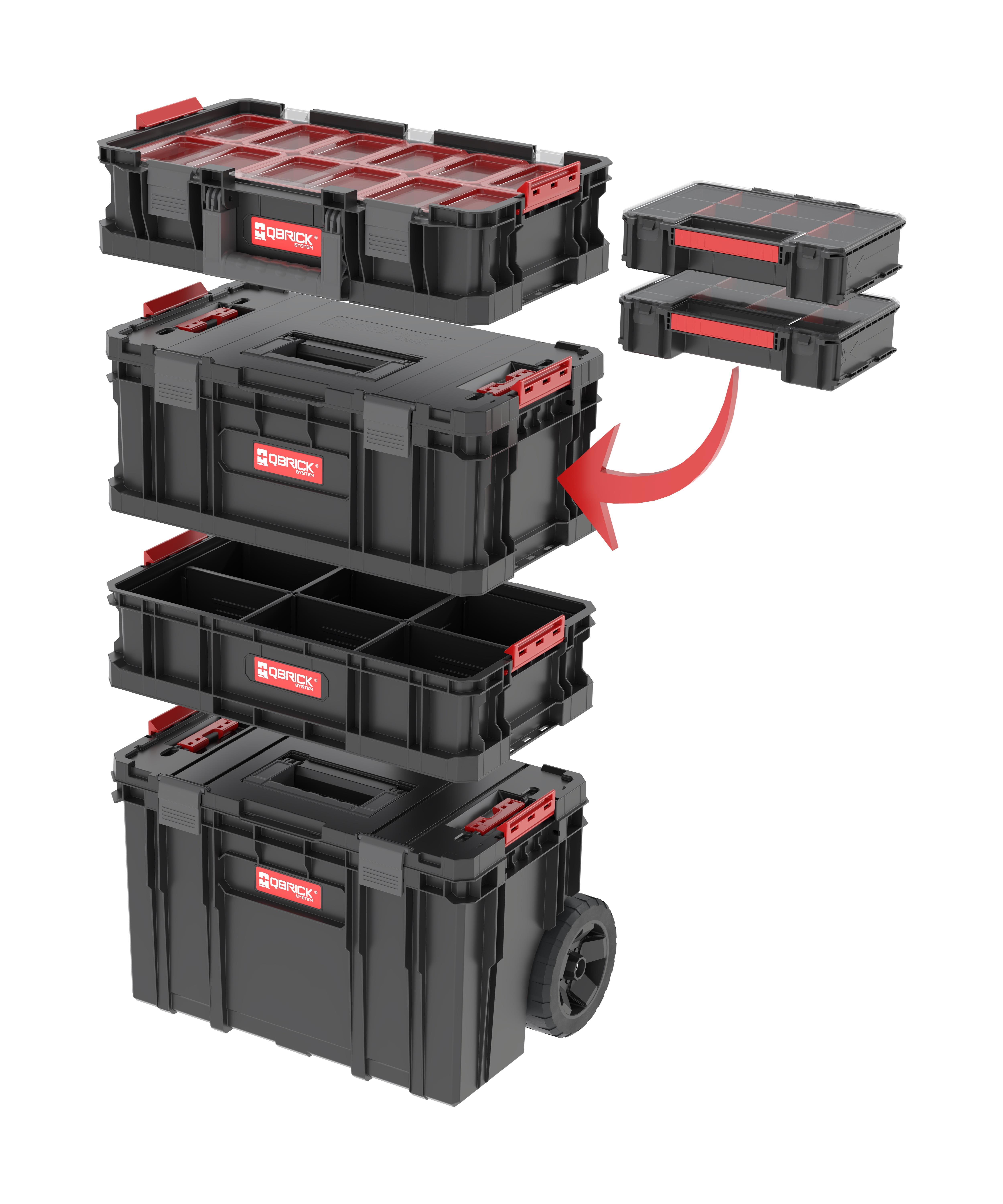 Σετ εργαλειοθήκες SYSTEM TWO 6 σε 1 σε πύργο Περιέχει: 1 Εργαλειοθήκη με ρόδες και λαβή CART PLUS 530X385X690mm 38L 1 Εργαλειοθήκη TOOLBOX PLUS 530X310X225mm 26L 1 Εργαλειοθήκη ανοιχτή BOX 100 FLEX με 5 αποσπώμενα χωρίσματα 530X295X130mm 14,3L 1 Κασετίνα