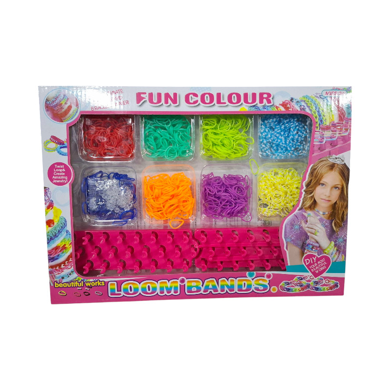 Σετ κατασκευής ελαστικών βραχιολιών DIY με ποικιλία από πολύχρωμα λαστιχάκια, πρακτική βάση πλέξης και όλα τα σύνεργα που θα χρειαστείς για να φτιάξεις τις δικές σου υπέροχες δημιουργίες όπως εσύ θα ήθελες!