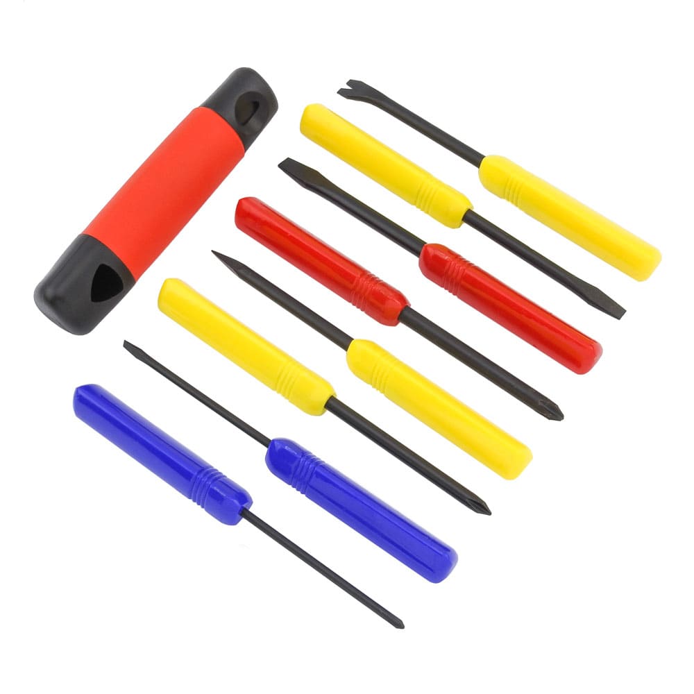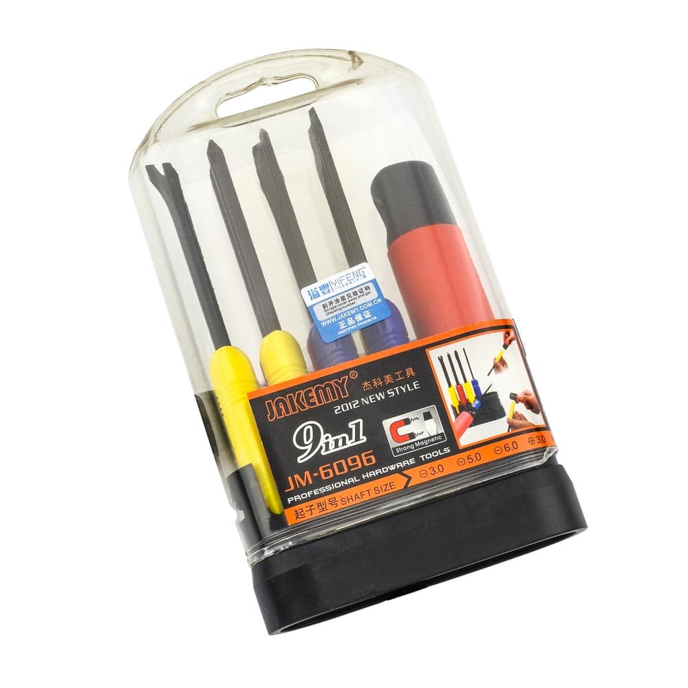 Σετ αποσυναρμολόγησης JM-6096 από τήν JAKEMY. Ενα σετ 9 σε 1 με διάφορα κατσαβίδια καθώς και μια ειδικά σχεδιασμένη χειρολαβή η οποία μπορει να χρησημοποιηθεί σαν μοχλός για τα κατσαβίδια σε σχήμα (L) επιτρέποντας σας να βάλετε μεγαλύτερη πίεση. Ιδανικό για τεχνικούς Η/Υ καθώς και για οικιακή χρήση κ.α. Χαρακτηριστικά: Κατσαβίδια κατασκευασμένα απο CR-V με μήκος 13,6 mm Διπλής λειτουργίας αντιολισθιτική χειρολαβή Διάφανη φορητή συσκευασία Κατσαβίδια: Slotted: 3.0/ 5.0/ 6.0 Phillips: 3.0/ 5.0/ 6.0 U-shaped: 5.0 Round: R5.0 1PC Handler DOA 14 ημερών