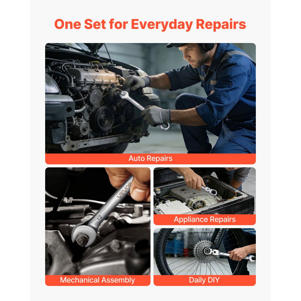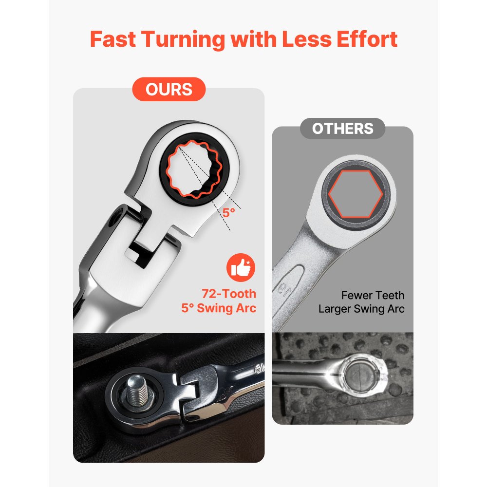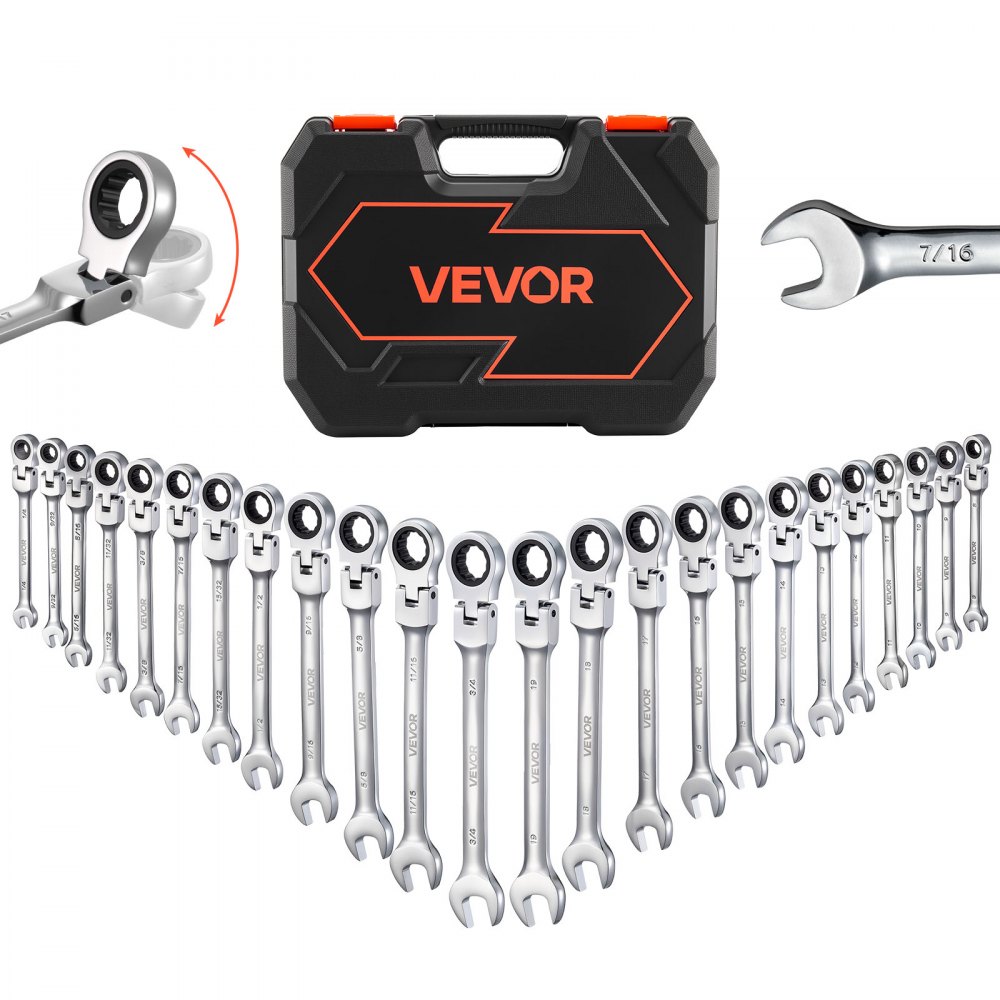 Πλήρης γκάμα μεγεθών για καθημερινές επισκευές: Το σετ 24 τεμαχίων με εύκαμπτη κεφαλή SAE και μετρικό κλειδί καστάνιας περιλαμβάνει 8-19 mm και 1/4"-3/4", παρέχοντας τα συνηθισμένα μεγέθη για εργασίες αυτοκινήτου, συντήρηση σπιτιού, συναρμολόγηση μηχανημάτων και εργασίες DIY. Ομαλή περιστροφή για γρήγορη εργασία: Η καστάνια 72 δοντιών και ο σχεδιασμός μικρο-ταλάντωσης 5° μειώνουν την κίνηση του χεριού για ομαλό έλεγχο σε στενούς χώρους. Αυτό το εύκαμπτο σετ κλειδιών καστάνιας διαθέτει αντιολισθητική λαβή και ακριβή εμπλοκή γραναζιών για ευκολότερη, αδιάλειπτη περιστροφή. Ευέλικτη πρόσβαση σε στενούς χώρους: Η εύκαμπτη κεφαλή 180° περιστρέφεται ομαλά γύρω από εμπόδια, επιτρέποντάς σας να φτάσετε σε εσοχές ή σε δύσκολες γωνίες χωρίς να αλλάξετε τη θέση του χεριού σας. Αυτό το σετ κλειδιών με εύκαμπτη κεφαλή είναι ιδανικό για επισκευές αυτοκινήτων, μηχανήματα και περιορισμένους χώρους. Κατασκευασμένο για μακροχρόνια καθημερινή χρήση: Αυτό το σετ κλειδιών με καστάνια είναι κατασκευασμένο με ενισχυμένο ατσάλινο σώμα και κεφαλή καστάνιας Cr-V για αντοχή και αξιοπιστία. Το φινίρισμα που αντιστέκεται στη σκουριά εξασφαλίζει αξιόπιστη απόδοση ακόμη και σε υγρά ή λιπαρά περιβάλλοντα. Μείνετε οργανωμένοι και βρείτε εργαλεία πιο γρήγορα: Κάθε κλειδί στο σετ κλειδιών με εύκαμπτη καστάνια φέρει σαφή ετικέτα και αποθηκεύεται σε μια προσαρμοσμένη θήκη αποθήκευσης, διατηρώντας τα πάντα τακτοποιημένα και εύκολα προσβάσιμα, εξοικονομώντας χρόνο κατά τη διάρκεια πολυάσχολων εργασιών επισκευής.