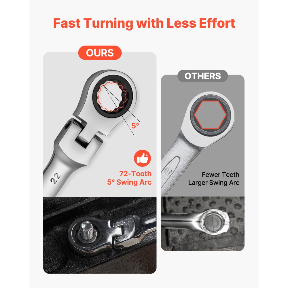 Πλήρης γκάμα μεγεθών για καθημερινές επισκευές: Το σετ 30 τεμαχίων με εύκαμπτη κεφαλή SAE και μετρικό κλειδί καστάνιας περιλαμβάνει 8-24 mm και 1/4"-1", παρέχοντας τα συνηθισμένα μεγέθη για εργασίες αυτοκινήτου, συντήρηση σπιτιού, συναρμολόγηση μηχανημάτων και εργασίες DIY. Ομαλή περιστροφή για γρήγορη εργασία: Η καστάνια 72 δοντιών και ο σχεδιασμός μικρο-περιστροφής 5° μειώνουν την κίνηση του χεριού για ομαλό έλεγχο σε στενούς χώρους. Αυτό το εύκαμπτο σετ κλειδιών καστάνιας διαθέτει αντιολισθητική λαβή και ακριβή εμπλοκή γραναζιών για ευκολότερη και αδιάλειπτη περιστροφή. Ευέλικτη πρόσβαση σε στενούς χώρους: Η εύκαμπτη κεφαλή 180° περιστρέφεται ομαλά γύρω από εμπόδια, επιτρέποντάς σας να φτάσετε σε εσοχές ή σε δύσκολες γωνίες χωρίς να αλλάξετε τη θέση του χεριού σας. Αυτό το σετ κλειδιών με εύκαμπτη κεφαλή είναι ιδανικό για επισκευές αυτοκινήτων, μηχανήματα και περιορισμένους χώρους. Κατασκευασμένο για μακροχρόνια καθημερινή χρήση: Αυτό το σετ κλειδιών με καστάνια είναι κατασκευασμένο με ενισχυμένο ατσάλινο σώμα και κεφαλή καστάνιας Cr-V για αντοχή και αξιοπιστία. Το φινίρισμα που αντιστέκεται στη σκουριά εξασφαλίζει αξιόπιστη απόδοση ακόμη και σε υγρά ή λιπαρά περιβάλλοντα. Μείνετε οργανωμένοι και βρείτε εργαλεία πιο γρήγορα: Κάθε κλειδί στο σετ κλειδιών με εύκαμπτη καστάνια φέρει σαφή ετικέτα και αποθηκεύεται σε μια ειδικά σχεδιασμένη θήκη, διατηρώντας τα πάντα τακτοποιημένα και εύκολα προσβάσιμα, εξοικονομώντας χρόνο κατά τη διάρκεια πολυάσχολων εργασιών επισκευής.
