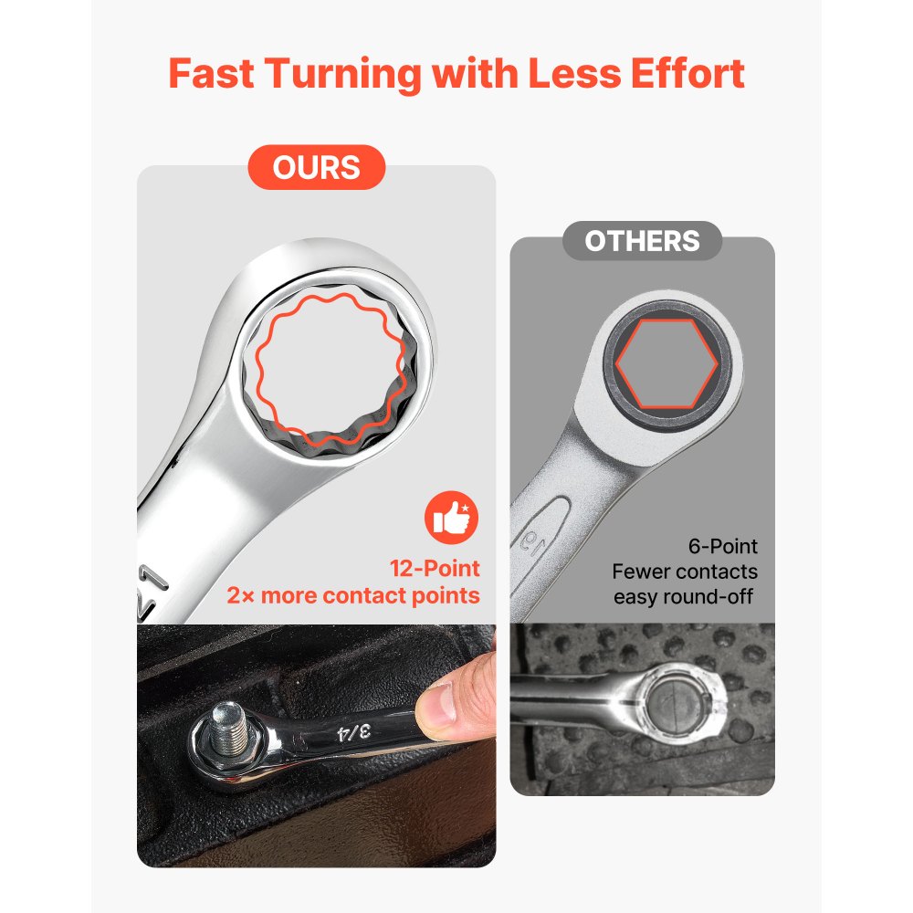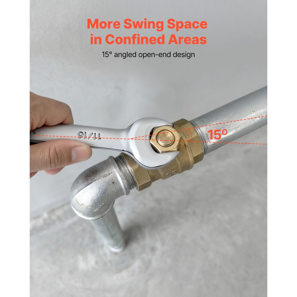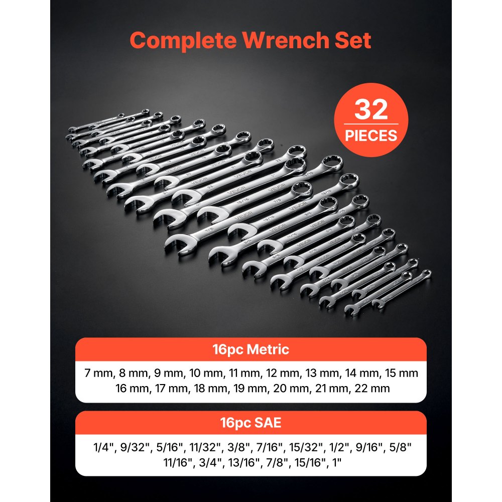 Ευρεία Κάλυψη Μεγεθών: Το σετ 32 τεμαχίων με συνδυασμένα κλειδιά SAE και μετρικά περιλαμβάνει 7-22 mm και 1/4"-1", παρέχοντας τα συνηθισμένα μεγέθη για επισκευές αυτοκινήτων, μηχανική συναρμολόγηση, συντήρηση συσκευών και έργα DIY. Σταθερή λαβή με άκρο 12 σημείων: Το άκρο 12 σημείων βελτιώνει την επαφή με τα συνδετικά στοιχεία για να μειώσει την ολίσθηση και τη φθορά κατά το σφίξιμο ή το ξεσφίξιμο. Αυτό το σετ κλειδιών εξασφαλίζει ομαλή περιστροφή και καλύτερο έλεγχο, ακόμη και σε φθαρμένα ή μερικώς στρογγυλεμένα παξιμάδια. Ανοιχτό άκρο με γωνία 15° για καλύτερη πρόσβαση: Το ανοιχτό άκρο 15° παρέχει επιπλέον χώρο για τα χέρια για ευκολότερη περιστροφή σε στενούς ή δύσβατους χώρους. Τα κλειδιά μας με συνδυασμό δημιουργούν χώρο για περιστροφή όπου τα επίπεδα κλειδιά δεν μπορούν να κινηθούν ελεύθερα, βελτιώνοντας την άνεση και την αποτελεσματικότητα. Κατασκευασμένο για να αντέχει: Κατασκευασμένο από ενισχυμένο χάλυβα με αντισκωριακή επίστρωση, το σετ κλειδιών ανοιχτού άκρου μας προσφέρει μακροπρόθεσμη αξιοπιστία σε διάφορα εργασιακά περιβάλλοντα. Η στιβαρή κατασκευή του διατηρεί το σχήμα και την απόδοσή του με την πάροδο του χρόνου, ακόμη και με συχνή χρήση. Οργανωμένη αποθήκευση: Κάθε κλειδί φέρει σαφή ετικέτα και αποθηκεύεται σε μια τυλιγόμενη θήκη για εύκολη οργάνωση. Τα ορατά διατεταγμένα μεγέθη σάς επιτρέπουν να πιάνετε γρήγορα το σωστό εργαλείο. Αυτό το τυπικό σετ κλειδιών είναι ιδανικό για γκαράζ σπιτιού, εργαστήρια ή επισκευές εν κινήσει.