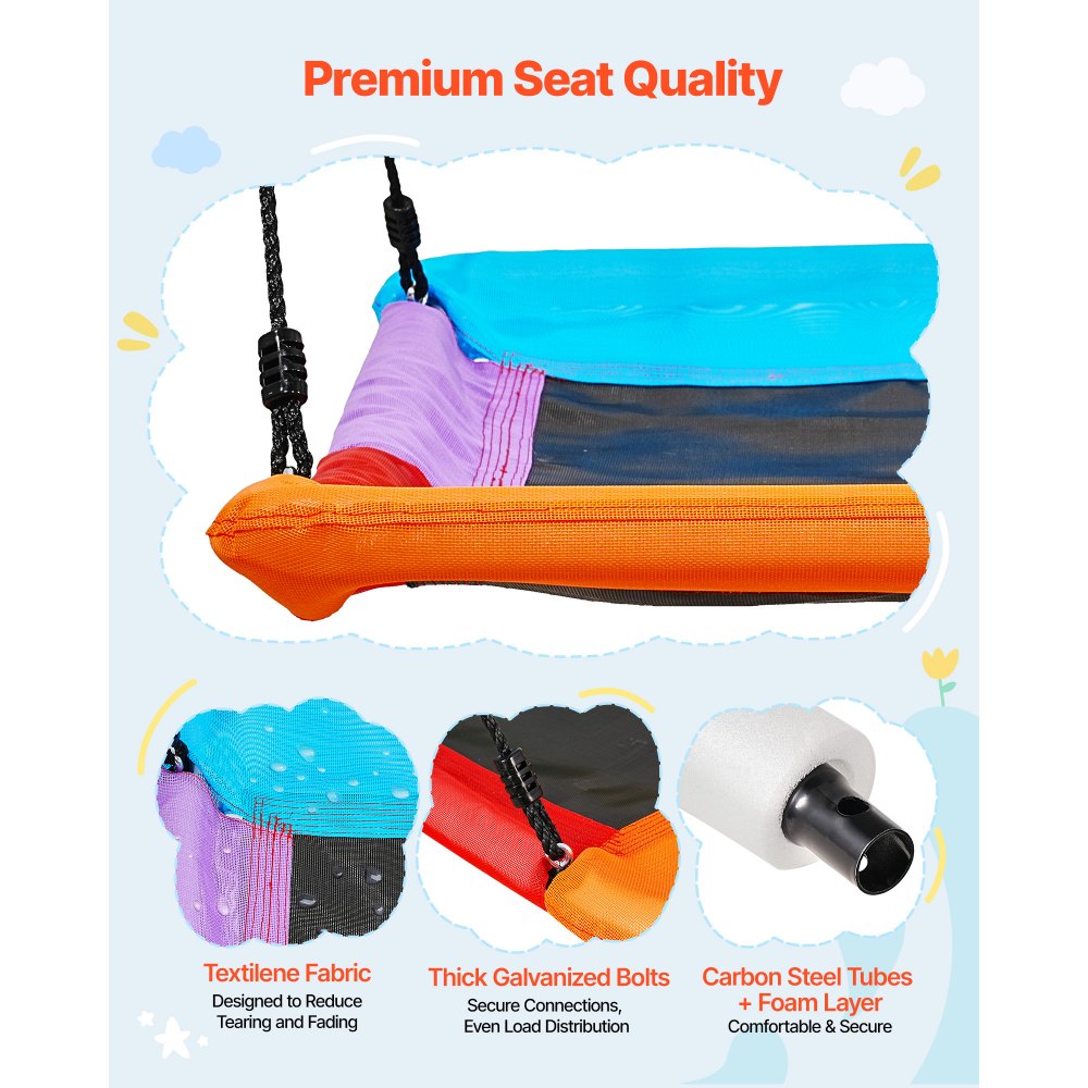 Ανθεκτική δομή: Αυτό το σετ κούνιας σε σχήμα Α για την αυλή αντέχει έως και 199,6 κιλά. Το ατσάλινο πλαίσιο σε σχήμα Α σχηματίζει μια σταθερή τριγωνική βάση και μπορεί να στερεωθεί στο έδαφος με τις παρεχόμενες σπειροειδείς αγκύρες εδάφους για σταθερή χρήση κατά την κούνια. Πλατύ κάθισμα κούνιας: Αυτή η κούνια με βάση περιλαμβάνει μια τετράγωνη κούνια με πιατάκι διαστάσεων 60 x 32 ίντσες/150 x 81 εκ., παρέχοντας άφθονο χώρο για να καθίσετε ή να χαλαρώσετε. Ο ευρύχωρος σχεδιασμός ενισχύει την άνεση κατά τη διάρκεια του παιχνιδιού και ταιριάζει στις υπαίθριες δραστηριότητες των παιδιών. Ρυθμιζόμενο ύψος: Το ύψος του σχοινιού ανάρτησης μπορεί να ρυθμιστεί ευέλικτα για να προσαρμόζεται σε διαφορετικά ύψη και προτιμήσεις χρήσης. Αυτό το σετ κούνιας καλύπτει τις συνεχείς ανάγκες των παιδιών καθώς μεγαλώνουν. Κατασκευασμένη για χρήση σε εξωτερικούς χώρους: Σχεδιασμένη με ποιοτικά υλικά, αυτή η κούνια με σκελετό είναι ιδανική για εξωτερικούς χώρους και επαναλαμβανόμενη καθημερινή χρήση. Διαθέτει επικαλυμμένους χαλύβδινους σωλήνες, ύφασμα καθίσματος που διατηρεί το χρώμα με την πάροδο του χρόνου και απαλούς αλλά ανθεκτικούς υφαντούς ιμάντες κρέμασης. Εύκολη συναρμολόγηση: Αυτή η κούνια εξωτερικού χώρου για παιδιά έχει σχεδιαστεί για εύκολη εγκατάσταση με πασσάλους εδάφους και τα απαραίτητα εργαλεία που περιλαμβάνονται. Οι προ-τρυπημένες τρύπες, τα μπουλόνια και ένα πλήρες κιτ εξαρτημάτων υποστηρίζουν γρήγορη συναρμολόγηση σε γρασίδι ή χώμα.
