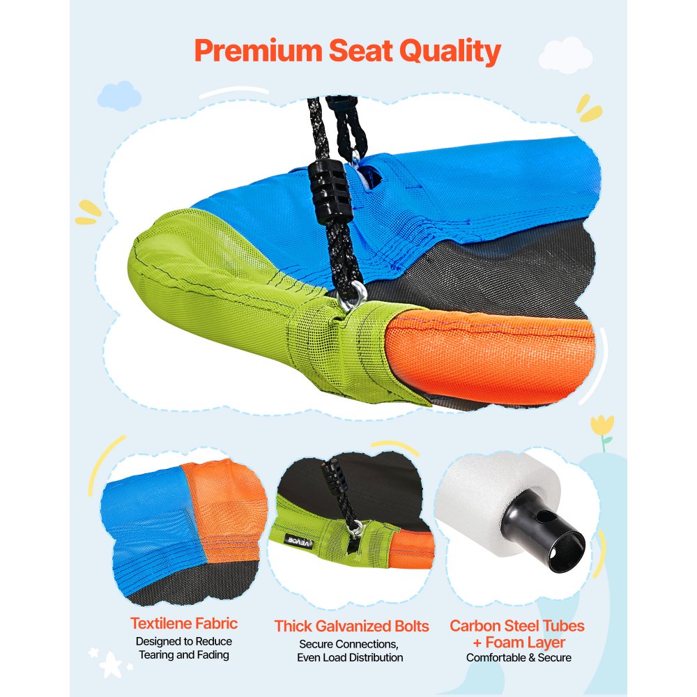 Ανθεκτική δομή: Αυτό το σετ κούνιας σε σχήμα Α για την αυλή αντέχει έως και 199,6 κιλά. Το ατσάλινο πλαίσιο σε σχήμα Α σχηματίζει μια σταθερή τριγωνική βάση και μπορεί να στερεωθεί στο έδαφος με τις παρεχόμενες σπειροειδείς αγκύρες εδάφους για σταθερή χρήση κατά την κούνια. Ευρύχωρο κάθισμα με κούνια: Αυτή η κούνια με πιατάκι με βάση περιλαμβάνει μια στρογγυλή κούνια με πιατάκι 40 ιντσών/100 εκ., παρέχοντας άφθονο χώρο για να καθίσετε ή να χαλαρώσετε. Ο ευρύχωρος σχεδιασμός ενισχύει την άνεση κατά τη διάρκεια του παιχνιδιού και ταιριάζει στις υπαίθριες δραστηριότητες των παιδιών. Ρυθμιζόμενο ύψος: Το ύψος του σχοινιού ανάρτησης μπορεί να ρυθμιστεί ευέλικτα για να προσαρμόζεται σε διαφορετικά ύψη και προτιμήσεις χρήσης. Αυτό το σετ κούνιας καλύπτει τις συνεχείς ανάγκες των παιδιών καθώς μεγαλώνουν. Κατασκευασμένη για χρήση σε εξωτερικούς χώρους: Σχεδιασμένη με ποιοτικά υλικά, αυτή η κούνια με σκελετό είναι ιδανική για εξωτερικούς χώρους και επαναλαμβανόμενη καθημερινή χρήση. Διαθέτει επικαλυμμένους χαλύβδινους σωλήνες, ύφασμα καθίσματος που διατηρεί το χρώμα με την πάροδο του χρόνου και απαλούς αλλά ανθεκτικούς υφαντούς ιμάντες κρέμασης. Εύκολη συναρμολόγηση: Αυτή η κούνια εξωτερικού χώρου για παιδιά έχει σχεδιαστεί για εύκολη εγκατάσταση με πασσάλους εδάφους και τα απαραίτητα εργαλεία που περιλαμβάνονται. Οι προ-τρυπημένες τρύπες, τα μπουλόνια και ένα πλήρες κιτ εξαρτημάτων υποστηρίζουν γρήγορη συναρμολόγηση σε γρασίδι ή χώμα.