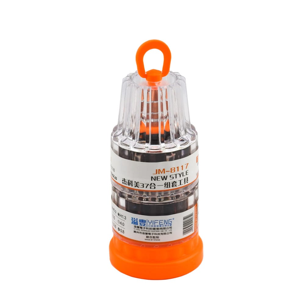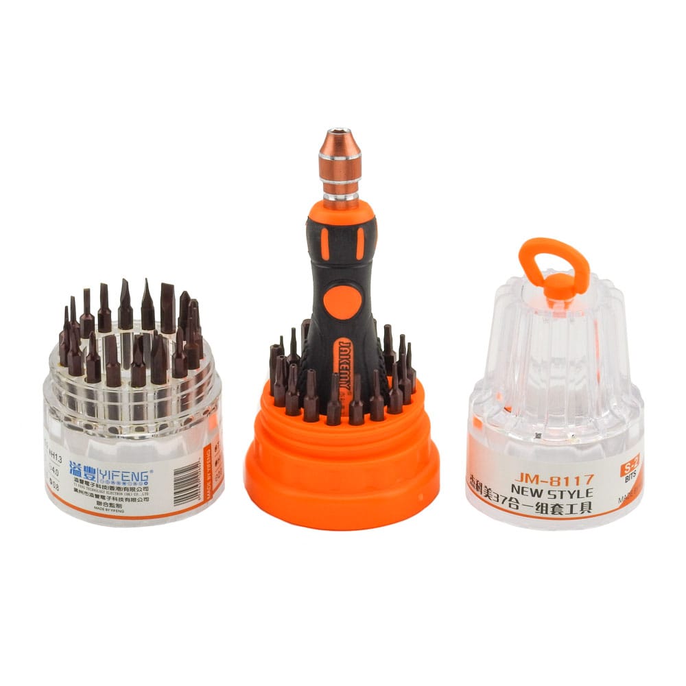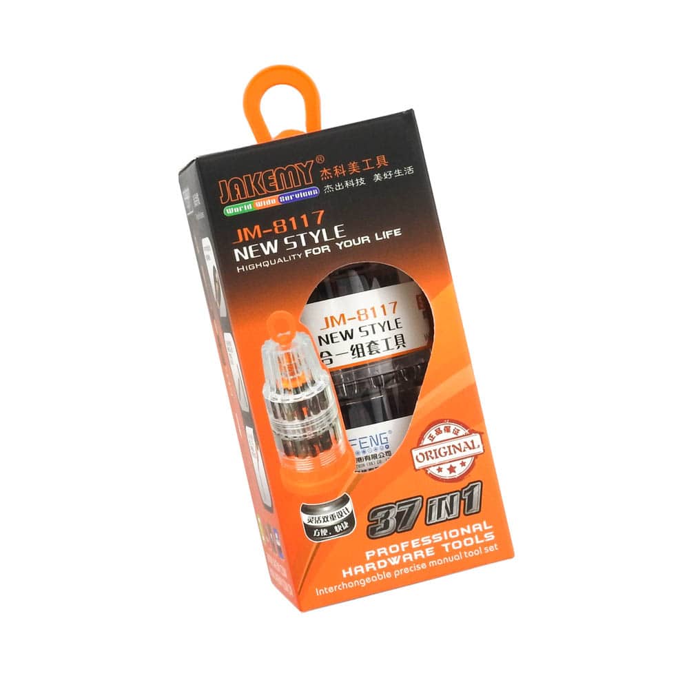 Σετ κατσαβίδι με μύτες πυργάκι JM-8117 από την JAKEMY. Ένα σετ 36 μυτών με κατσαβίδι σε συσκευασία (πυργάκι) 2 επιπέδων, χρήσιμο για όλα τα εργαστήρια ηλεκτρονικών, τεχνικών smartphones και τεχνικών Η/Υ. Το σετ σας προσφέρει ένα κατσαβίδι 100mm με μαγνητική υποδοχή μυτών τύπου 4*28mm, ιδανικό για όλα τα laptops, tablets, smartphones και όχι μόνο. Με την εργονομική λαβή μπορείτε να δουλεύετε ξεκούραστα ακόμη και όταν πρόκειται για πολύωρη και συνεχή εργασία. Επίσης η μαγνητική υποδοχή μυτών θα σας διευκολύνει στην γρήγορη αφαίρεση και εναλλαγή των μυτών. Περιεχόμενα: Εργαλεία: 1 κατσαβίδι μήκους 100mm για μύτες τύπου 4*28mm, με μαγνητική υποδοχή και αντιολισθητική λαβή Μύτες: 36 PCS 4*28mm κράμα χρωμίου-χάλυβα Slotted: 1/ 1.5/ 2/ 2.5/ 3/ 3.5/ 4 Phillips: 1/ 1.5/ 2/ 2.5/ 3.5 Torx: T3/ T4/ T5/ T6/ T7/ T8/ T9/ T10/ T15/ T20 Hex: H0.9/ H1.3/ H1.5/ H2/ H2.5/ H3/ H3.5/ H4 Tri-Wing: Y2 Triangle: 2/ 2.3 Pentable(Star): 0.8 U-Shaped: U2.6 Round: R0.8 DOA 14 ημερών