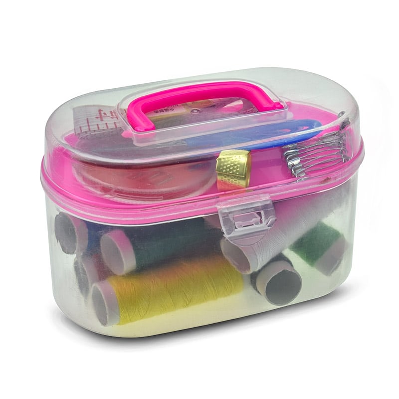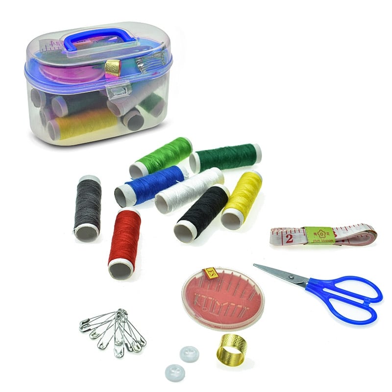 Σετ Ραπτικής βαλιτσάκι με χειρολαβή για να το έχετε παντού μαζί σας. Ελαφρύ και φορητό, περιλαμβάνει ψαλίδι, κλωστές, μεζούρα, δαχτυλήθρα, κουμπιά, παραμάνες και σετ με βελόνες. Μικρού όγκου, πρακτικό και πλήρες σετ επιδιόρθωσης ενδυμάτων που θα σας διευκολύνει σε όλες τις εργασίες σας. Χρήσιμο σε κάθε ταξίδι σας. Περιεχόμενα: 1x Ψαλίδι 1x Μεζούρα 150cm 1x Δαχτυλήθρα μεταβλητού μεγέθους 2x Κουμπιά απλά 8x Κλωστές σε διάφορα χρώματα 10x Βελόνες με μάτι σε διάφορα μεγέθη 11x Παραμάνες 2.8cm Διαστάσεις 12.5 x 6.5 x 7.5cm DOA 14 Ημερών