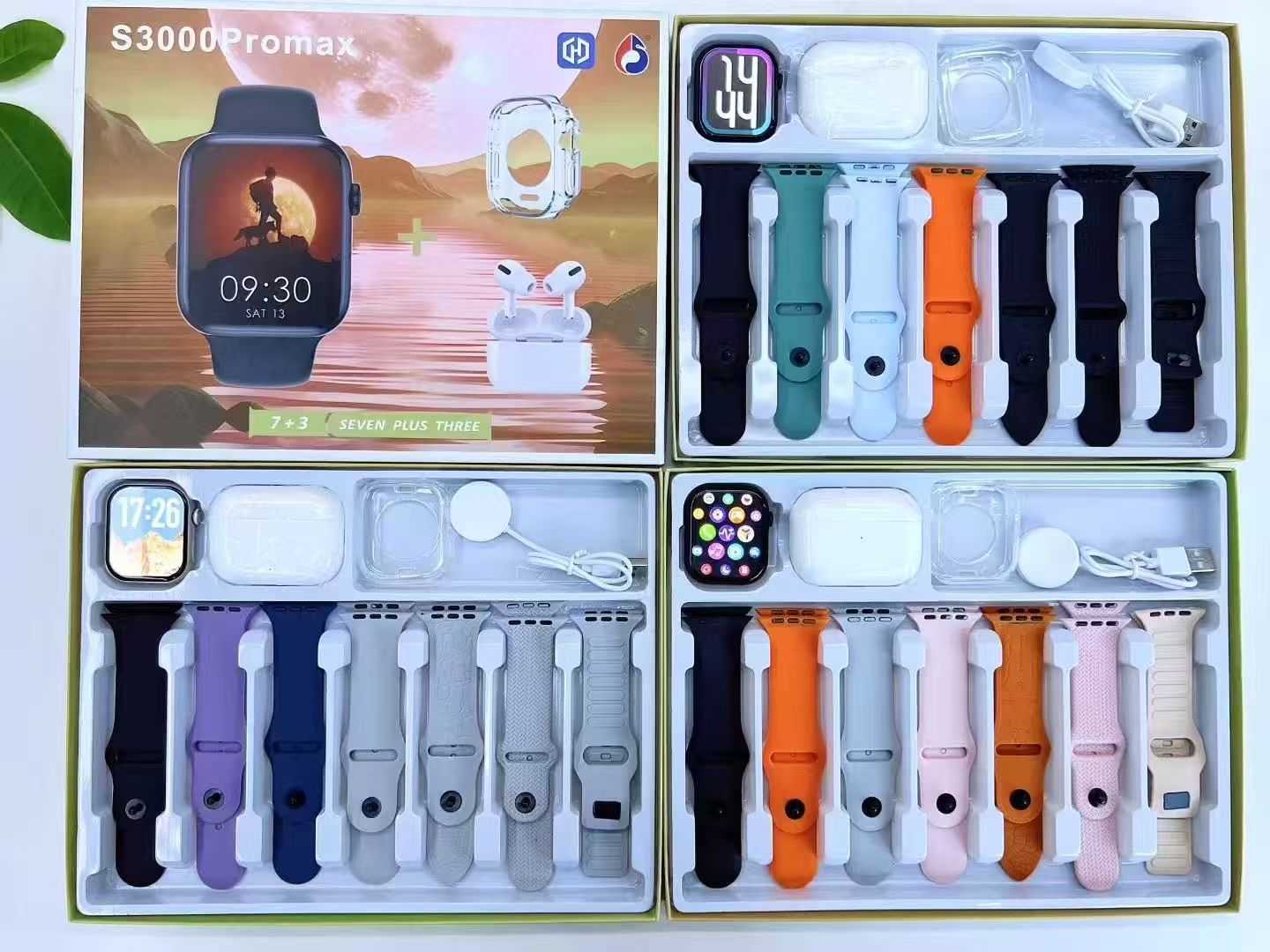 Σετ Smartwatch με ασύρματα ακουστικά Bluetooth & 7 λουράκια - S3000 Pro Max - 814093 - Grey