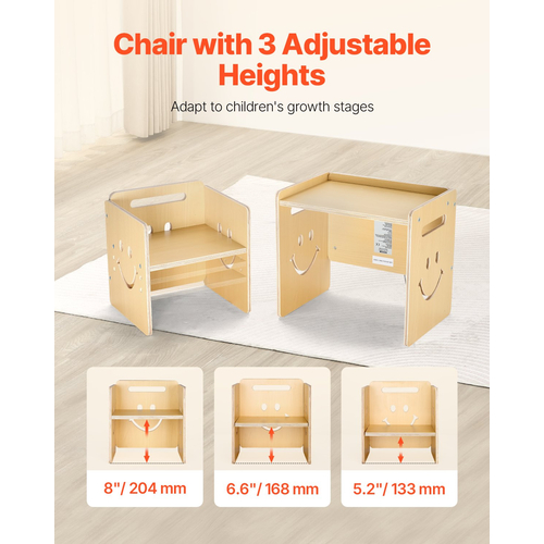 Ρυθμιζόμενο ύψος: Το παιδικό σετ τραπεζιού και καρέκλας απογαλακτισμού Montessori προσφέρει τρεις επιλογές ρύθμισης ύψους (5,2 in / 133 mm, 6,6 in / 168 mm, 8 in / 204 mm) για να καλύψει τις ανάγκες του παιδιού σας σε διάφορα στάδια ανάπτυξης.