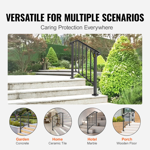Εκτεταμένη εφαρμογή: Το κιγκλίδωμα για τα σκαλοπάτια παρέχει επιπλέον ασφάλεια για τους ηλικιωμένους, τα παιδιά, τις έγκυες, τα μέλη της οικογένειας με ειδικές ανάγκες και τα άτομα μετά την επέμβαση. Μπορεί να τοποθετηθεί σε σκαλοπάτια από σκυρόδεμα, τούβλα και ξύλο σε βεράντες, μπαλκόνια, κήπους, κτίρια κατοικιών, ξενοδοχεία, γκαράζ κ.λπ. Αυτό το εξωτερικό κιγκλίδωμα είναι ιδανικό για μέρη όπου δεν μπορείτε να στερεώσετε σε τοίχο ή κατασκευή.