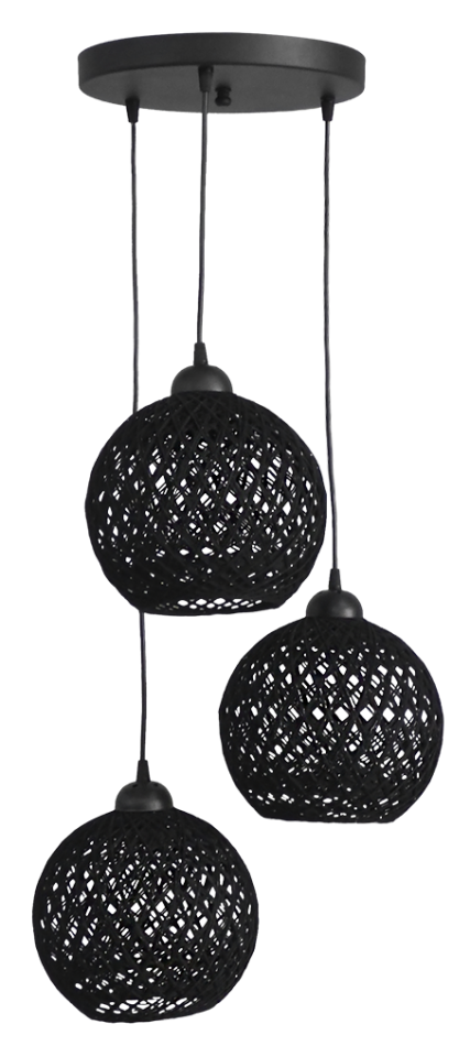 Φωτιστικό ανισόπεδο 3φωτο με μπάλες Φ20 SILK 3L PENDEL BL-BLACK Τεχνικά χαρακτηριστικά μπάλες φυσικό σχοινί / πλαστική βάση στρογγυλή Χρώμα φυσικό σχοινί / μαύρο Η100 x Φ45cm 3 x E/27 LED