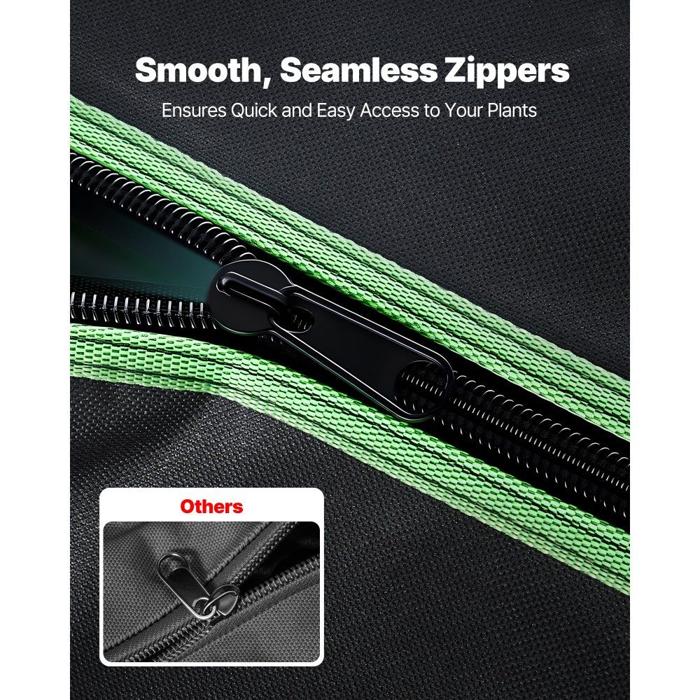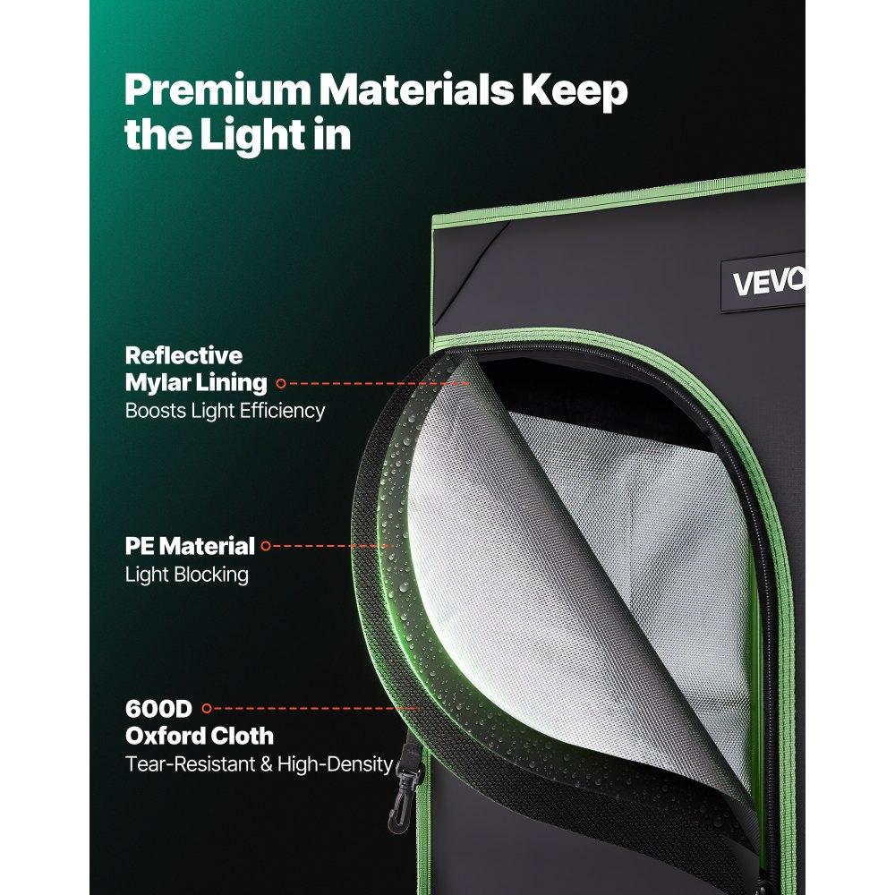 Σκηνή Εσωτερικής Καλλιέργειας: Δημιουργήστε τον ιδανικό εσωτερικό χώρο κηπουρικής με αυτή τη σκηνή καλλιέργειας φυτών. Μέσα στη σκηνή, μπορείτε να ελέγχετε τον φωτισμό, τη θερμοκρασία και την υγρασία, καθιστώντας την ιδανική για την καλλιέργεια λουλουδιών, φρούτων, βοτάνων ή λαχανικών. Διατίθεται σε διάφορα μεγέθη για να καλύψει διαφορετικές ανάγκες φύτευσης. 100% Ανακλαστικό Εσωτερικό: Το εσωτερικό διαθέτει μεμβράνη πολυεστέρα που μεγιστοποιεί την αντανάκλαση του φωτός και ελαχιστοποιεί την απώλεια θερμότητας, προωθώντας την υγιή ανάπτυξη των φυτών. Το εξωτερικό είναι κατασκευασμένο από ανθεκτικό ύφασμα 600D Oxford που είναι ανθεκτικό στο σκίσιμο και μπλοκάρει το φως. Τα φερμουάρ με διπλή μαύρη επένδυση σφραγίζουν αποτελεσματικά τα κενά. Σταθερή και εύκολη εγκατάσταση: Εξοπλισμένη με στιβαρό μεταλλικό σκελετό, αυτή η σκηνή για φυτά εσωτερικού χώρου προσφέρει ισχυρή στήριξη για την αποφυγή παραμόρφωσης ή κατάρρευσης. Ο σχεδιασμός αλληλοσύνδεσης με σταθερούς γωνιακούς συνδέσμους επιτρέπει την εγκατάσταση χωρίς εργαλεία. Με μέγιστη χωρητικότητα φορτίου 20 κιλών, μπορεί να υποστηρίξει επιπλέον εξοπλισμό, ανάλογα με τις ανάγκες. Εύκολη Παρατήρηση & Συντήρηση: Η σκηνή καλλιέργειας για φυτά εσωτερικού χώρου διαθέτει αποσπώμενο δίσκο στο κάτω μέρος που αποτρέπει τη συσσώρευση υγρασίας και καθαρίζεται εύκολα. Τα λεία φερμουάρ παρέχουν εύκολη πρόσβαση και σας επιτρέπουν να παρακολουθείτε την πρόοδο των φυτών σας χωρίς να ανοίγετε εντελώς τη σκηνή, ελαχιστοποιώντας την αναστάτωση. Προσεγμένος Σχεδιασμός: Η σκηνή εσωτερικής καλλιέργειας διαθέτει 1 θύρα καλωδίου, 3 θύρες αγωγών, 1 παράθυρο πλέγματος, για βελτιστοποίηση της ροής του αέρα, διαχείριση καλωδίων και σωληνώσεων, για σωστό αερισμό και μπλοκάρισμα από παράσιτα.