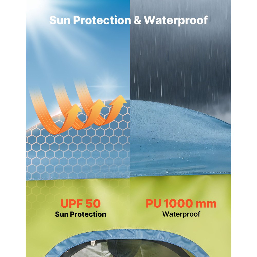 Ασφάλεια και προστασία απορρήτου: Όταν κάνετε ντους ή αλλάζετε ρούχα σε εξωτερικό χώρο, και τα δύο έχουν σημασία. Το παχύ εξωτερικό ύφασμα και το πλαίσιο από υαλοβάμβακα διατηρούν τη σκηνή ντους κάμπινγκ σταθερή στον αέρα ή τη βροχή, ενώ ο αερισμός και η εσωτερική αποθήκευση προσθέτουν άνεση σαν στο σπίτι. Προστασία από τον ήλιο και αντοχή στο νερό: Κατασκευασμένη από ύφασμα Oxford 150D με προστασία UPF 50, η σκηνή εξωτερικού ντους μας μπλοκάρει το έντονο ηλιακό φως. Τα πλαϊνά παράθυρα βελτιώνουν τη ροή του αέρα. Η αντοχή στο νερό PU2000mm επιτρέπει στη βροχή να γλιστράει γρήγορα, διατηρώντας το εσωτερικό στεγνό. Πολλαπλές επιλογές αποθήκευσης: Αυτή η φορητή σκηνή ντους προσφέρει άνεση σε εξωτερικούς χώρους, σαν στο σπίτι. Το σκοινί απλώματος κρεμάει πετσέτες και ρούχα, το πάνω γάντζο κρατάει ένα φως ή κεφαλή ντους και η τσέπη αποθήκευσης κρατάει τα τηλέφωνα και τα μικρά αντικείμενα οργανωμένα. Λεπτομέρειες Premium: Αυτή η σκηνή ντους περιλαμβάνει αποσπώμενο προστατευτικό βροχής για ψιλή βροχή, αποσπώμενο χαλάκι δαπέδου που λειτουργεί σε γρασίδι ή άμμο και παράθυρα που εξασφαλίζουν αερισμό. Διαθέτει επίσης τσάντα ντους 5 γαλονιών για βασικά ντους για 1-2 άτομα. Πολυλειτουργική σκηνή: Η σκηνή ιδιωτικότητας 66 x 66 x 86 ιντσών εξασφαλίζει άφθονο χώρο για ντους. Παρέχει αερισμό όταν χρησιμοποιείται ως κινητή τουαλέτα και χρησιμεύει ως ιδιωτικός χώρος για γρήγορα ντους, ανάγκες τουαλέτας ή αλλαγές ρούχων.