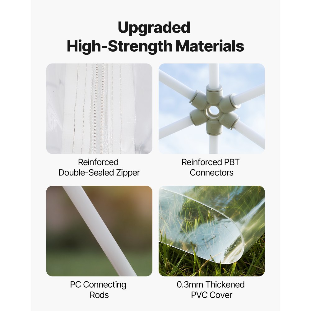 Πανοραμική θέα 360°: Κατασκευασμένο από παχύ, υψηλής διαφάνειας PVC, το ιγκλού με θόλο προσφέρει κρυστάλλινη, περιμετρική θέα με εξαιρετική ζεστασιά. Είναι ιδανικό για να απολαμβάνετε την ύπαιθρο με την οικογένειά σας. Συμβουλή: Τοποθετήστε τη σκηνή σε ένα ζεστό μέρος μετά το άνοιγμα της συσκευασίας, ώστε το PVC να ισιώσει για πιο ομαλή εμφάνιση. Ευρύχωρος & Άνετος Σχεδιασμός: Με διάμετρο 9,5 πόδια και ύψος 5,7 πόδια, ο εξωτερικός θόλος ιγκλού χωράει άνετα 2-4 ενήλικες. Ιδανικός για διακόσμηση με φώτα ή προσθήκη επίπλων βεράντας, διαθέτει επίσης πόρτα ύψους 4,6 ποδιών και πλαϊνά τριγωνικά παράθυρα για επιπλέον ροή αέρα και άνεση. Ανθεκτική και ανθεκτική στις καιρικές συνθήκες: Κατασκευασμένη με ανθεκτικούς στη σκουριά στύλους PC, αναβαθμισμένους συνδέσμους PBT και PVC πάχους 0,3 mm, η σκηνή με θόλο ιγκλού με φούσκα είναι κατάλληλη για -15°C έως 40°C, αντέχοντας σε ανέμους έως 50 χλμ/ώρα και 44 κιλά χιονιού. Διαθέτει πασσάλους, σφιγκτήρες και σακούλες άμμου για πρόσθετη σταθερότητα σε δύσκολες συνθήκες. Αξιόπιστη στεγανοποίηση: Η διάφανη σκηνή μας σε σχήμα θόλου διαθέτει θερμικά σφραγισμένες ραφές, διπλής στρώσης άκρες με φερμουάρ και ειδικά επεξεργασμένα τριγωνικά παράθυρα για να διατηρεί το εσωτερικό στεγνό, ακόμη και σε υγρά εξωτερικά περιβάλλοντα. Ευέλικτος εξωτερικός χώρος: Αυτός ο γεωδαιτικός θόλος είναι ιδανικός για κήπους, βεράντες, κάμπινγκ ή βεράντες. Χρησιμοποιήστε τον για φροντίδα φυτών, φαγητό, πάρτι, αποθήκευση ή ως διακοσμητικό στοιχείο. Ένα προσεγμένο δώρο για γιορτές όπως γενέθλια, Halloween, Χριστούγεννα ή Πρωτοχρονιά.