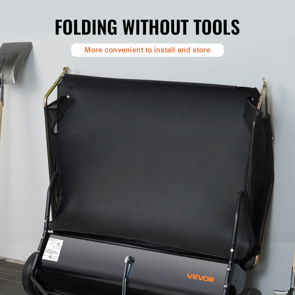 Κύρια υλικά: Σίδηρος, PP, PVC, ΠολυεστέραςΦινίρισμα: ΒάψιμοΥλικό τσάντας χοάνης: ΝάιλονΠλάτος σάρωσης: 44"Χωρητικότητα χοάνης: 25 κυβικά πόδια.Αναλογία βούρτσας-τροχού: 5Μέγεθος τροχού: 10,5 ίντσες / 26,7 εκ.Χρώμα: ΜαύροΜέγεθος προϊόντος (Μ x Π x Υ): 66,93 x 51,97 x 27,95 ίντσες/1700 x 1320 x 710 χιλ.