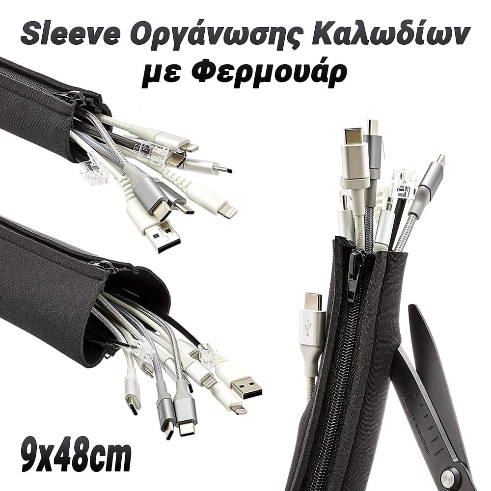 Τα μπερδεμένα, ακατάστατα καλώδια δεν είναι μόνο αντιαισθητικά, αλλά μπορούν να αποτελέσουν σημαντικό κίνδυνο για την ασφάλεια στο σπίτι ή στο γραφείο. Τα Sleeve Οργάνωσης Καλωδίων με Φερμουάρ 48cm σας επιτρέπουν να οργανώνετε τα καλώδια με τάξη και ασφάλεια, ανεξάρτητα από το πόσο πολύπλοκη είναι η διαμόρφωση σας. Διαστάσεις όταν είναι ανοιχτό: 48,3 x 9,5 cmΤυλίξτε πολλαπλά καλώδια σε έναν ενιαίο σωλήνα για να διατηρήσετε το σπίτι ή το γραφείο σας τακτοποιημένο!Αποτρέπει την ακαταστασία των μπερδεμένων καλωδίων. Με κλείσιμο φερμουάρ για εύκολη προσθήκη και αφαίρεση των καλωδίων!Κατασκευασμένο από υψηλής ποιότητας νεοπρένιο, το οποίο είναι εξαιρετικά εύκαμπτο και ανθεκτικό για να αντέχει στην καθημερινή φθορά! Δύο ή περισσότεροι από αυτούς τους εύκαμπτους σωλήνες μπορούν να συνδεθούν για να σχηματίσουν έναν πολύ μακρύ ή φαρδύ εύκαμπτο σωλήνα καλωδίων.Μπορούν εύκολα να καμφθούν, να λυγίσουν και να κοπούν σε διάφορα μεγέθη για τέλεια οργάνωση καλωδίων.Μπορείτε ακόμη και να κόψετε επιπλέον τρύπες σε αυτό για να οδηγείτε τα καλώδια έξω από τον εύκαμπτο σωλήνα σε οποιοδήποτε σημείο.