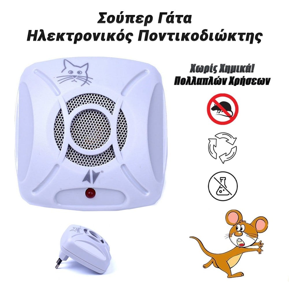 Ηλεκτρονική συσκευή που πραγματικά διώχνει αρουραίους και ποντίκια παράγοντας ενοχλητικό θόρυβο για τα τρωκτικά που τα ωθεί σε φυγή. Χρησιμοποιήστε σε διαμερίσματα, επιχειρήσεις εστίασης, βοηθητικά κτίρια, αποθήκες, στάβλους κ.λπ. Η ηλεκτρονική συσκευή προστασίας από αρουραίους, ποντίκια και άλλα τρωκτικά εκπέμπει ήχο υψηλής συχνότητας. Τα τρωκτικά εγκαταλείπουν την περιοχή δράσης της ηλεκτρονικής συσκευής, η οποία έχει εμβέλεια περίπου 50 τ.μ. Η τεχνολογία υπερήχων για την καταπολέμηση τρωκτικών είναι μη τοξική, δεν χρησιμοποιεί παγίδες, δεν βλάπτει την υγεία των ανθρώπων και των ζώων, δεν σκοτώνει τα τρωκτικά ενώ σε αντίθεση με τις άλλες συσκευές λειτουργεί συνεχώς και όχι όταν γίνει εντοπισμός με αισθητήρες διέλευσης. Η ηλεκτρονική συσκευή δεν παρεμβαίνει στη λειτουργία άλλων ηλεκτρονικών συσκευών - τηλεοράσεων, ραδιοφώνων κ.λπ.Τρόπος χρήσης:1. Συνδέστε τη συσκευή σε μία πρίζα δεν χρειάζετε τίποτε άλλο, καμία ρύθμιση, κανένα πάτημα διακόπτη, όσες ώρες είναι στη πρίζα δουλεύει. Δεν ακούγεται κάτι στο ανθρώπινο αυτί όσο λειτουργεί. Έχει πολύ χαμηλή κατανάλωση ρεύματος.2. Λάβετε υπόψη ότι η συσκευή εκπέμπει ηχητικά κύματα που είναι δύσκολο να περάσουν μέσα από τοίχους, έπιπλα και άλλα αντικείμενα. Χρησιμοποιήστε περισσότερες συσκευές εάν υπάρχουν εμπόδια στο χώρο. Λάβετε υπόψιν ότι δεν πρέπει να χρησιμοποιείτε σε χώρους με χάμστερ, ενώ δεν επηρεάζει μεγαλόσωμα θηλαστικά όπως γάτες, σκύλους κλπ οικόσιτα.